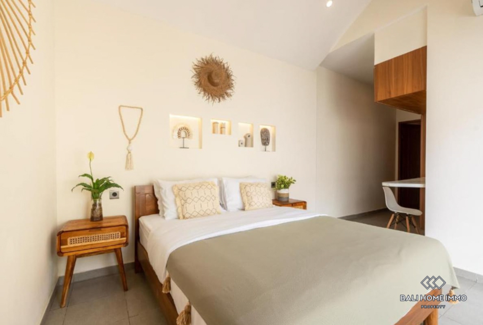 This modern two bedroom villa in the peaceful residential area of Seseh offers a perfect blend of comfort and contemporary living. Each bedroom comes with its own ensuite bathroom, providing privacy and convenience. The villa is fully furnished with stylish, high quality interiors and features an enclosed living area connected to a well equipped kitchen, ideal for both relaxing and entertaining. Large windows invite natural light, creating a bright and welcoming atmosphere throughout the space.