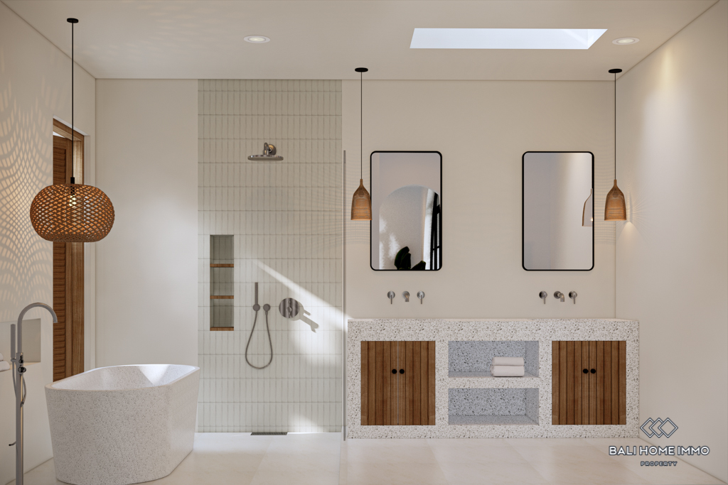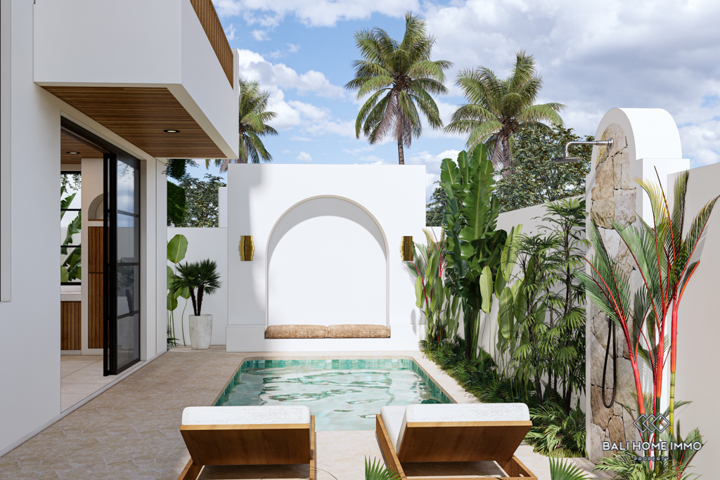 Nestled within a tranquil complex, this stunning off-plan villa offers the perfect escape amid Cemagi's lush rice fields. Only a 5-minute drive to the beach, this villa features a modern Mediterranean design, adorned with lush tropical plants that exude a serene atmosphere.