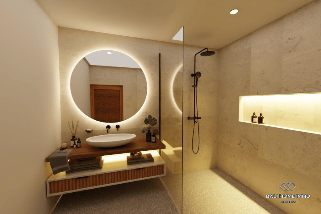 This modern villa is located in the tranquil residential area of Seseh, just a short 7-minute drive from the pristine beaches. Situated on 1,2 are of land, this property offers a serene environment surrounded by various amenities.