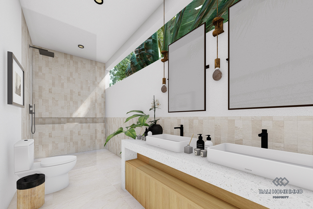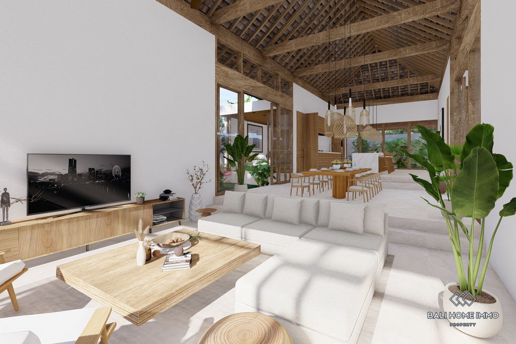 Located in the tranquil residential area of Cepaka, this modern villa offers a serene lifestyle just an 8-minute drive from a dog park. The property spans 13 Are with a spacious 335 m² building set for completion in 2024.