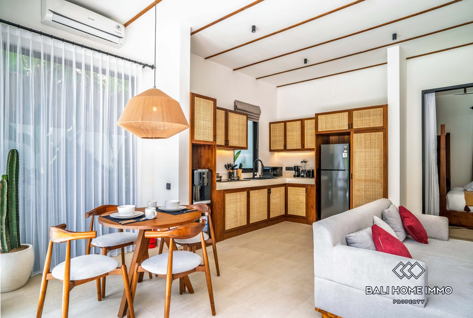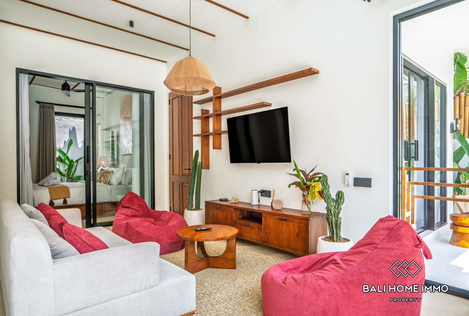 The villa features two spacious bedrooms, each completed with its own ensuite bathroom, creating a comfortable and private space for residents or guests. With calming interiors, natural textures, and warm finishes, every bedroom offers a relaxing atmosphere to unwind after a day in Bali.