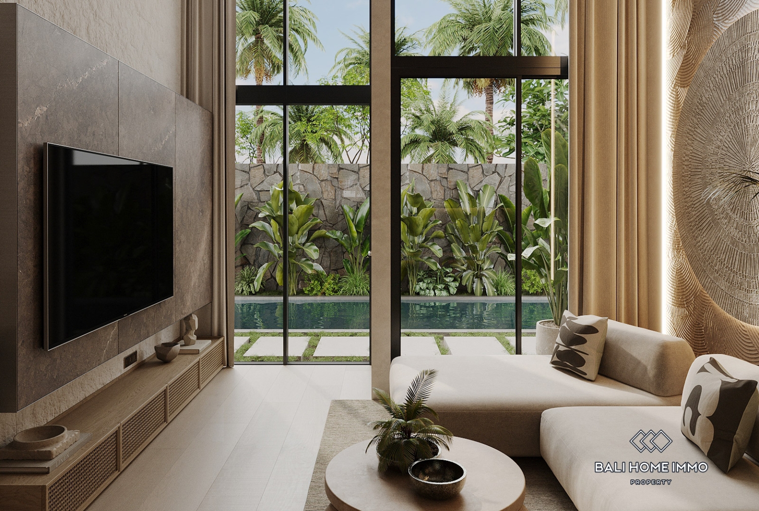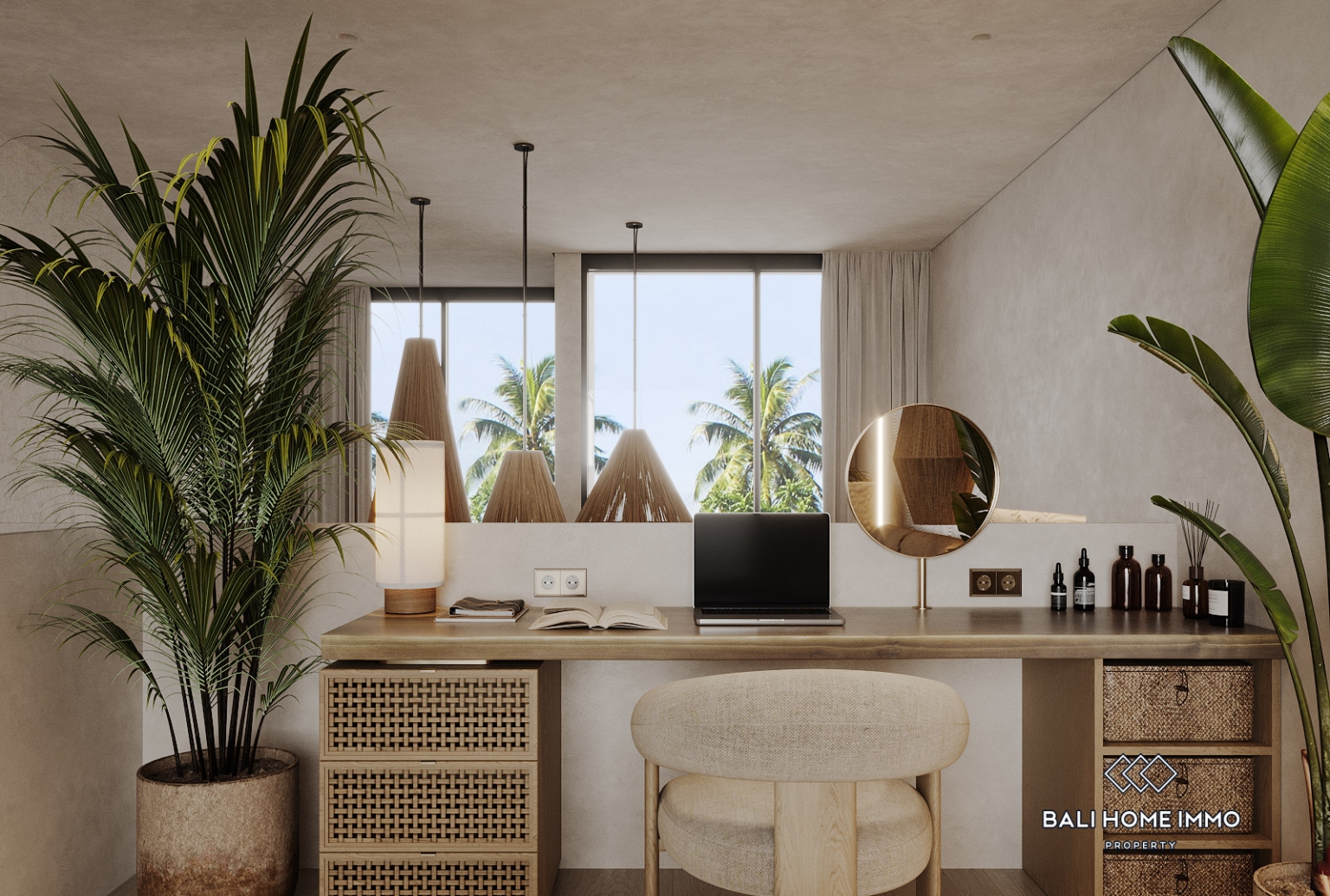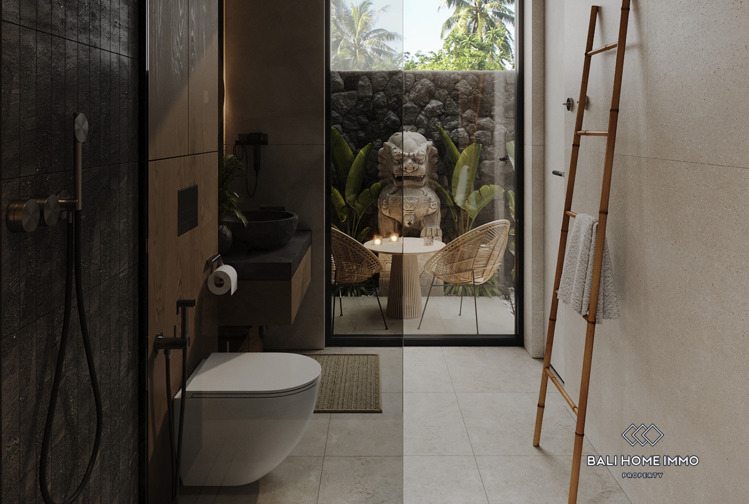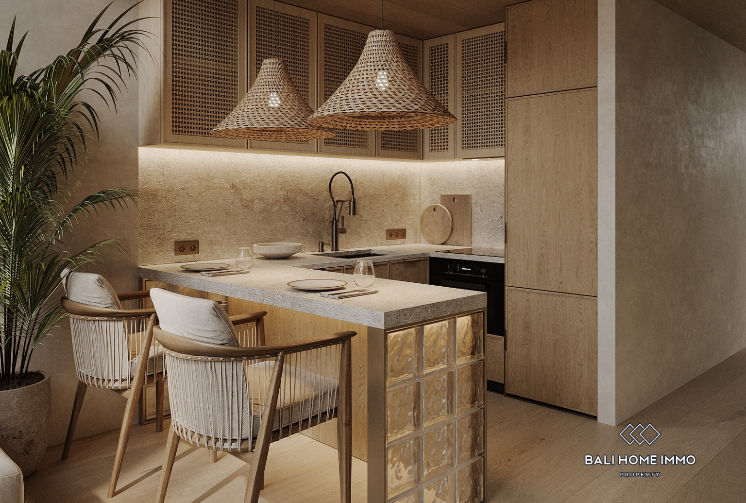 The apartment’s authentic design and ethnic atmosphere bring Bali’s natural beauty indoors. Featuring natural materials, the interior creates a warm and inviting environment that reflects the island’s unique character. On the ground floor, you’ll find a well-equipped kitchen, spacious living room, and modern bathroom, while the intimate bedroom is situated on the upper level, offering a serene space with a tranquil pool view.