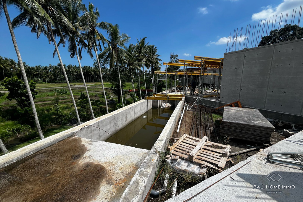 Nestled in the picturesque surroundings of Ubud, this modern property offers a tranquil retreat amidst the beauty of Bali's rice fields. With a land size of 3.52 are and a meticulously designed building spanning 375 square meters across two floors, this residence embodies contemporary living in a serene setting.