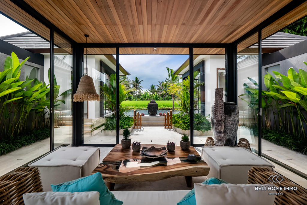 With a spacious 100 mยฒ of living space, the villa is thoughtfully designed to capture the essence of modern living. The enclosed living room provides a cozy retreat, seamlessly connecting with the outdoor oasis. Enjoy the breathtaking views of the neighboring rice fields from the comfort of your home.