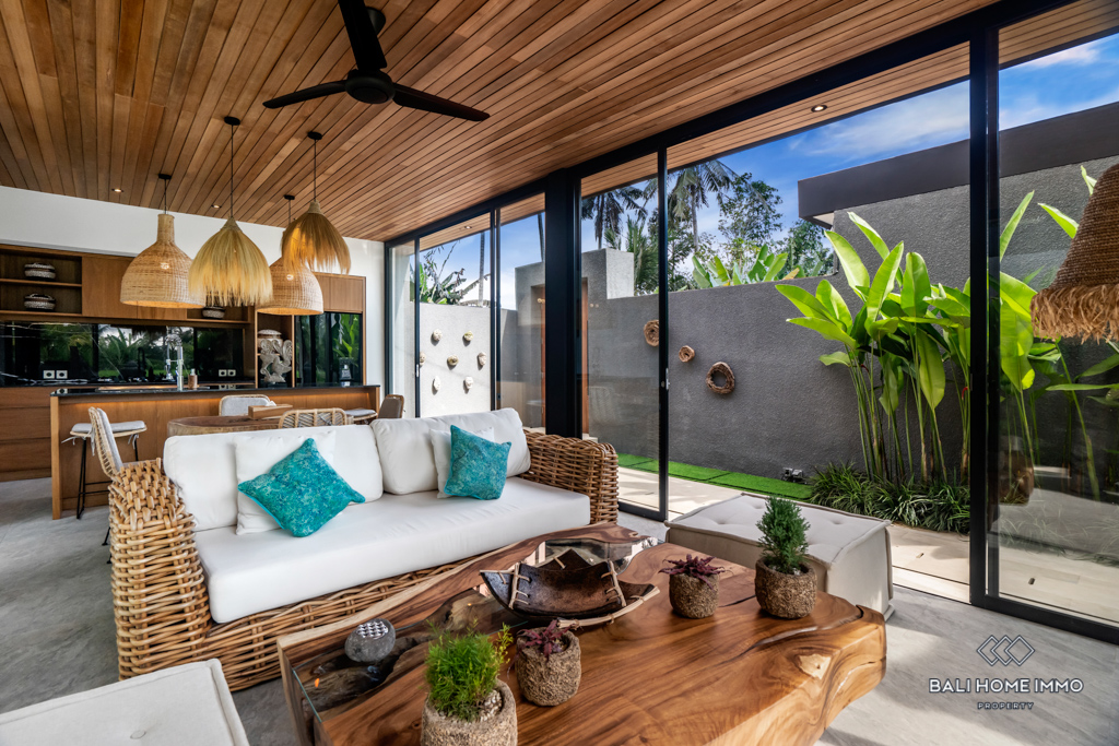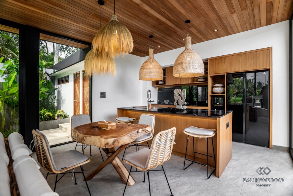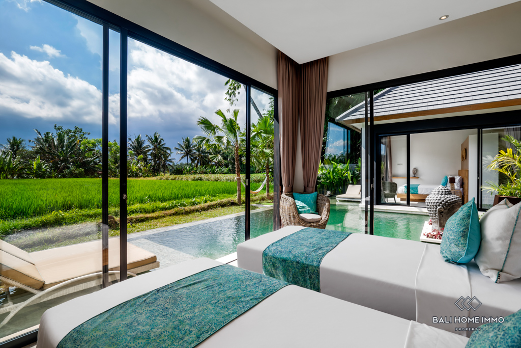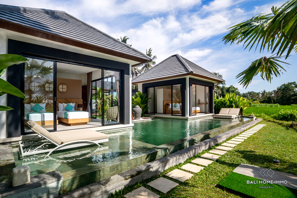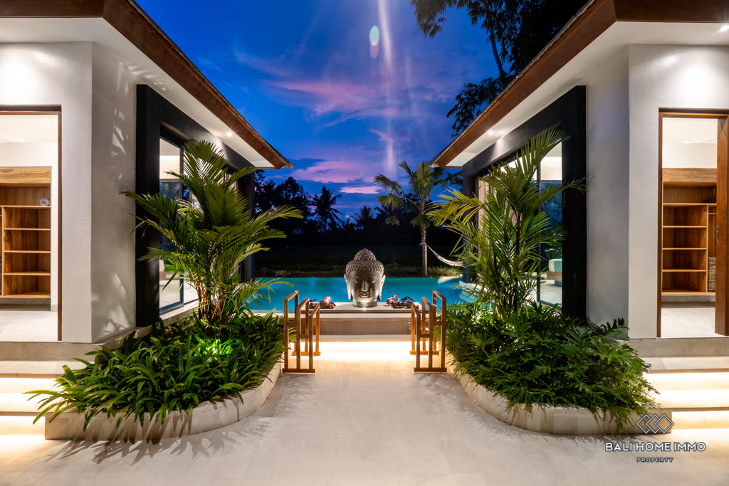 Nestled in the heart of Ubud, this modern villa offers an enchanting escape surrounded by the lush beauty of Bali's iconic rice fields. Situated on a 4-are land, this single-story gem boasts a harmonious blend of contemporary design and natural serenity.