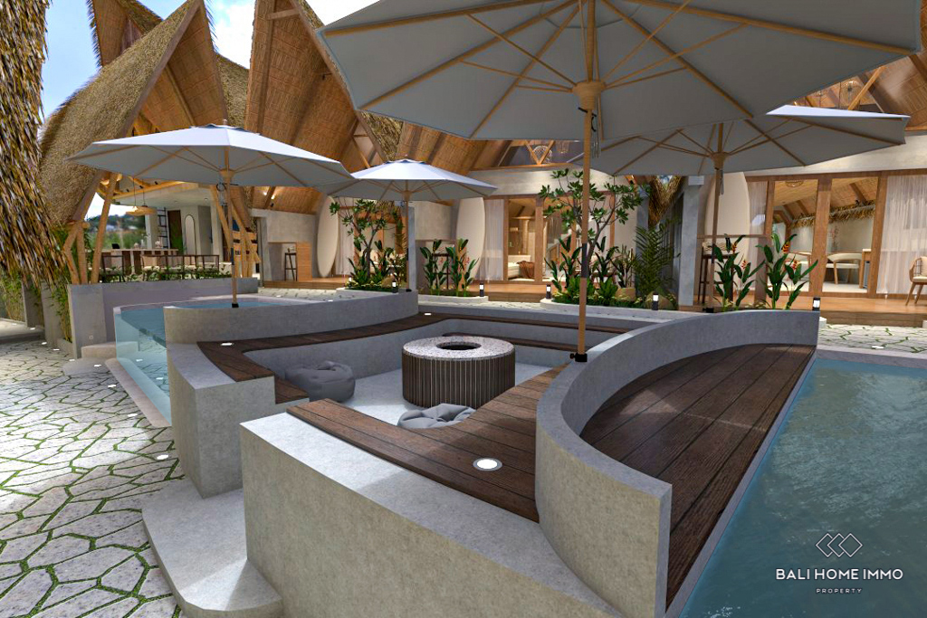 This 1-bedroom villa is situated within a boutique hotel consisting of 10 villas, located in the enchanting Uluwatu region of the Bukit Peninsula. It presents an excellent investment opportunity. The hotel offers a lobby and a restaurant, providing convenience to the guests. The villa is only a 7-minute drive away from Padang-Padang Beach, which is one of Bali's most renowned surf destinations. The charming villa is built on 0,58 are of land and boasts 78 square meters of beautifully designed living space.