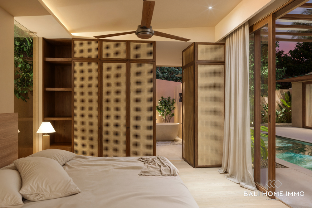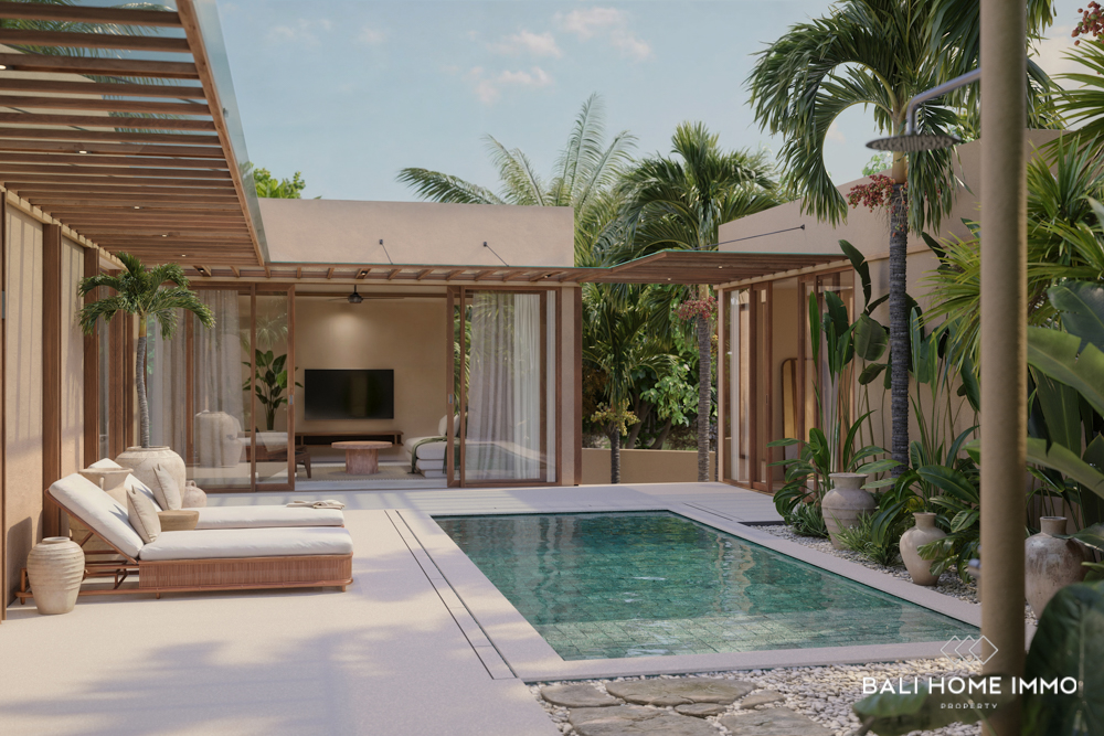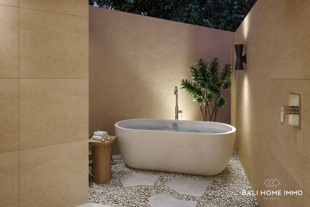Experience refined tropical living with this fully furnished off-plan 3-bedroom designer villa, available on a 29-year leasehold in the highly sought-after area of Uluwatu. Scheduled for completion in January 2026, the villa is thoughtfully designed to combine style, comfort, and functionality. Each bedroom comes with its own ensuite bathroom, while two of the rooms include built-in workspaces perfect for remote working or creative pursuits.