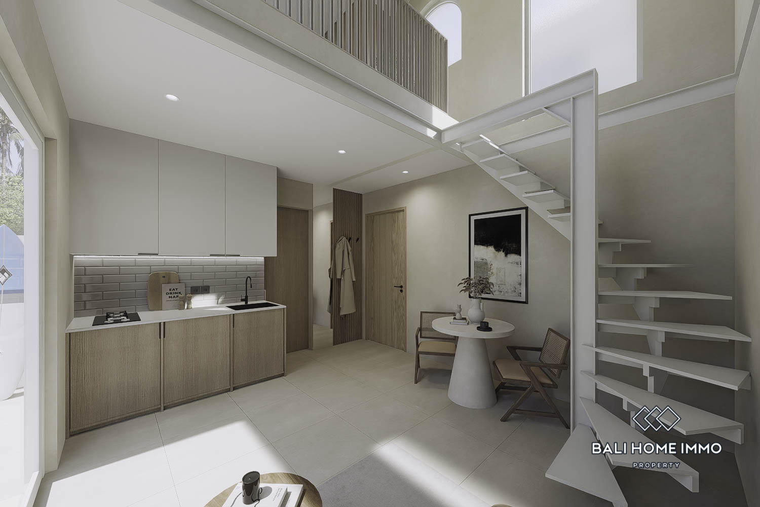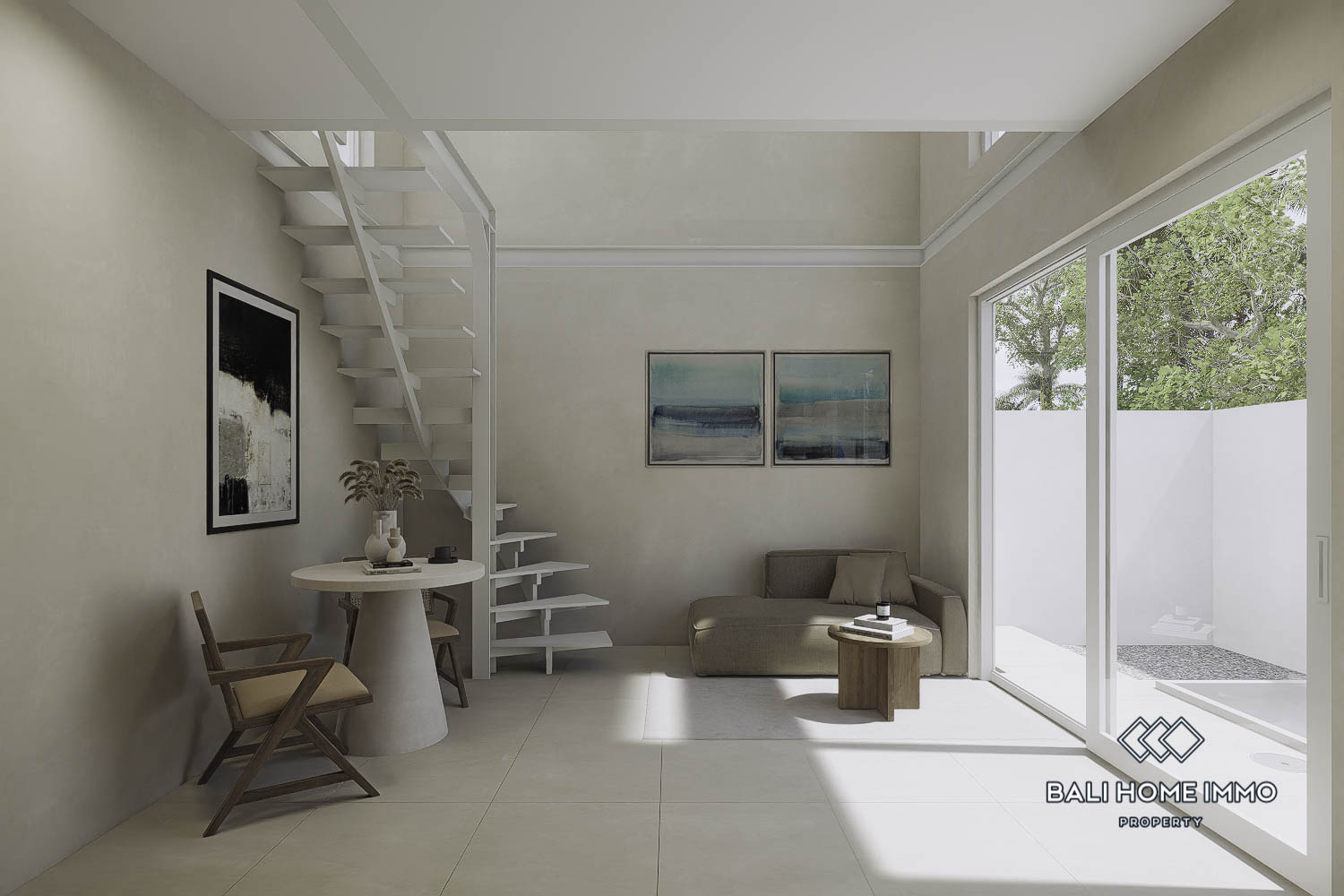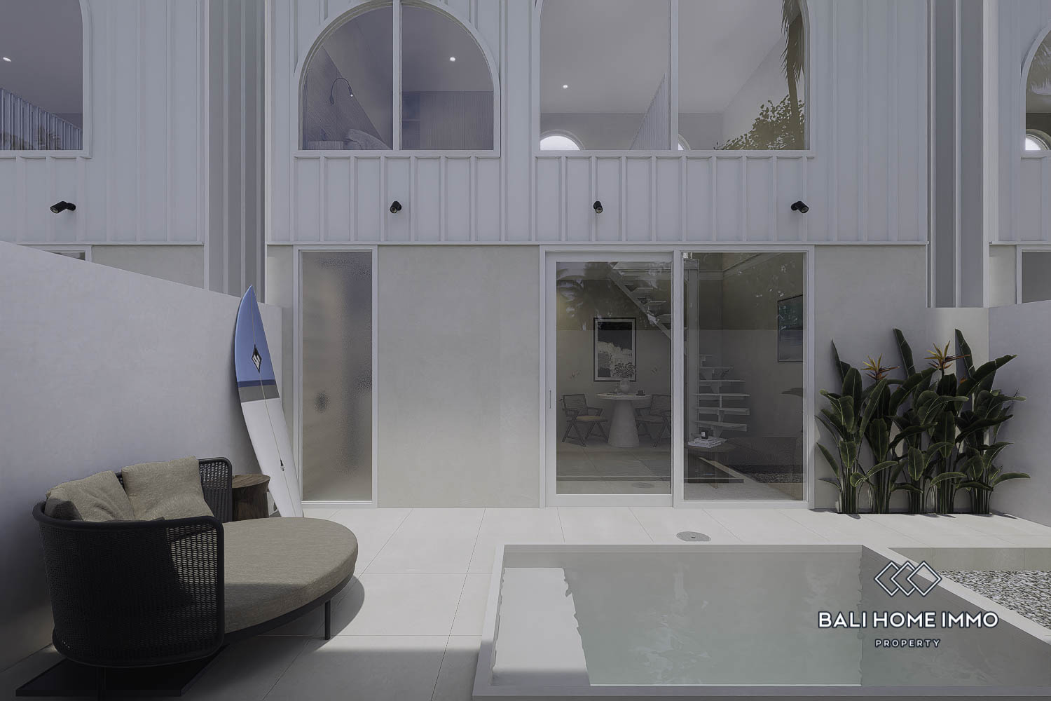 This modern two-story villa in Bingin is located just a 6-minute drive from Dreamland Beach, nestled in a prime touristic area. Despite its compact land size of 0.39 are, the villa offers a functional 34 mยฒ living space designed for comfort and style. The enclosed living room provides a cozy indoor space, perfect for relaxation.