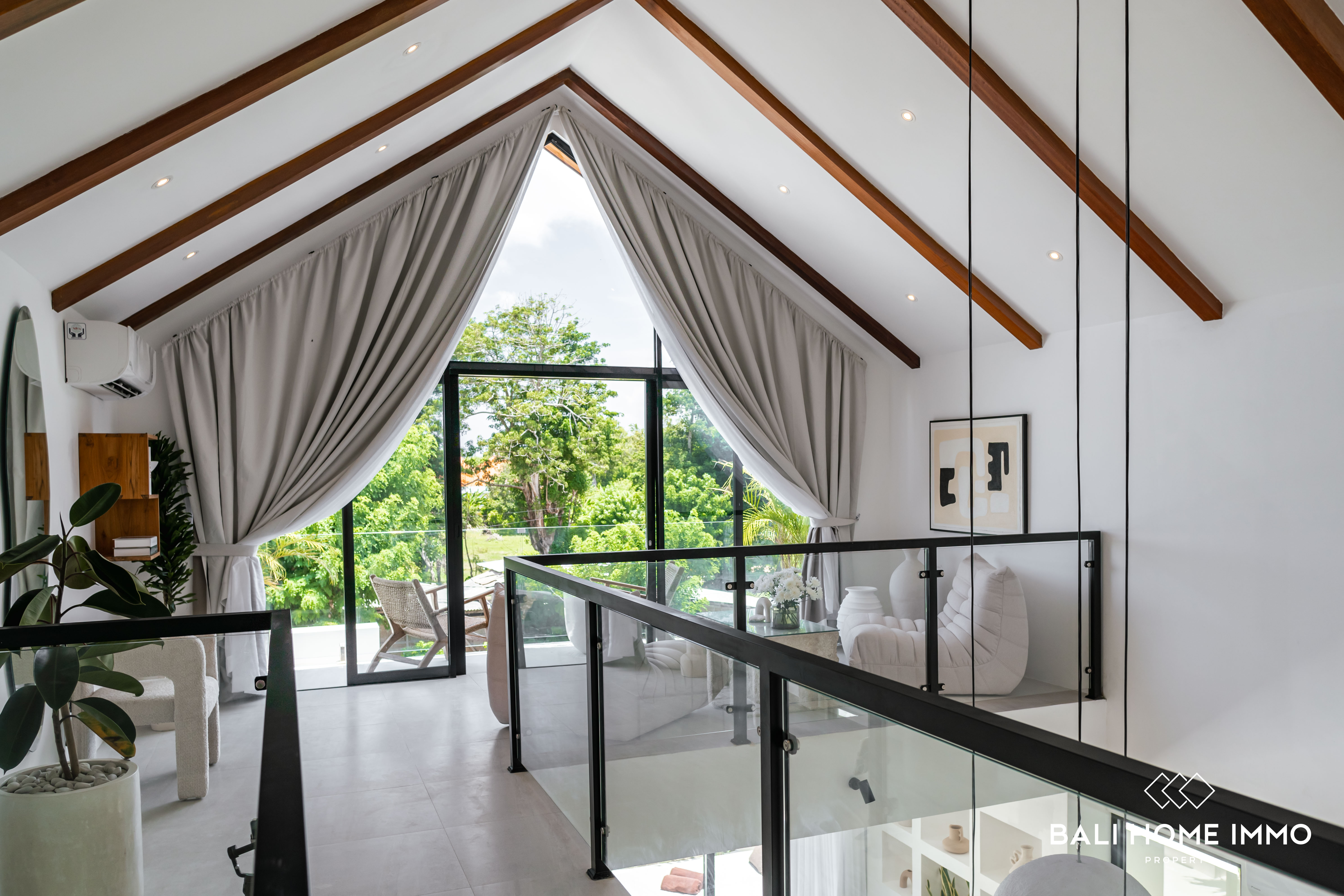 Adding to the homeโs charm, a quaint balcony provides delightful views, while a versatile mezzanine space can be customized as a lounge, office, or creative studio. The villaโs tropical design blends natural textures and light-filled interiors, creating a timeless yet welcoming atmosphere.