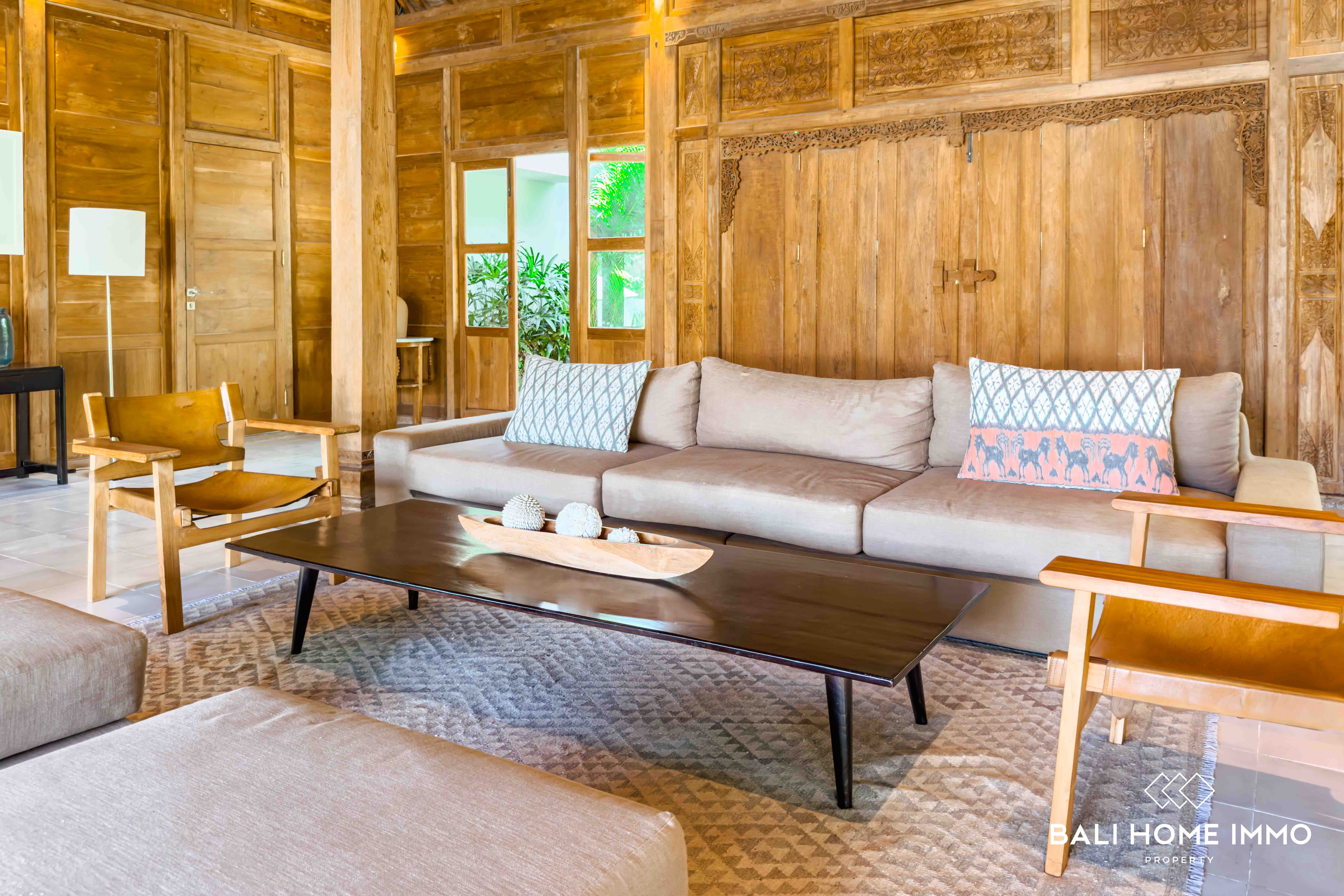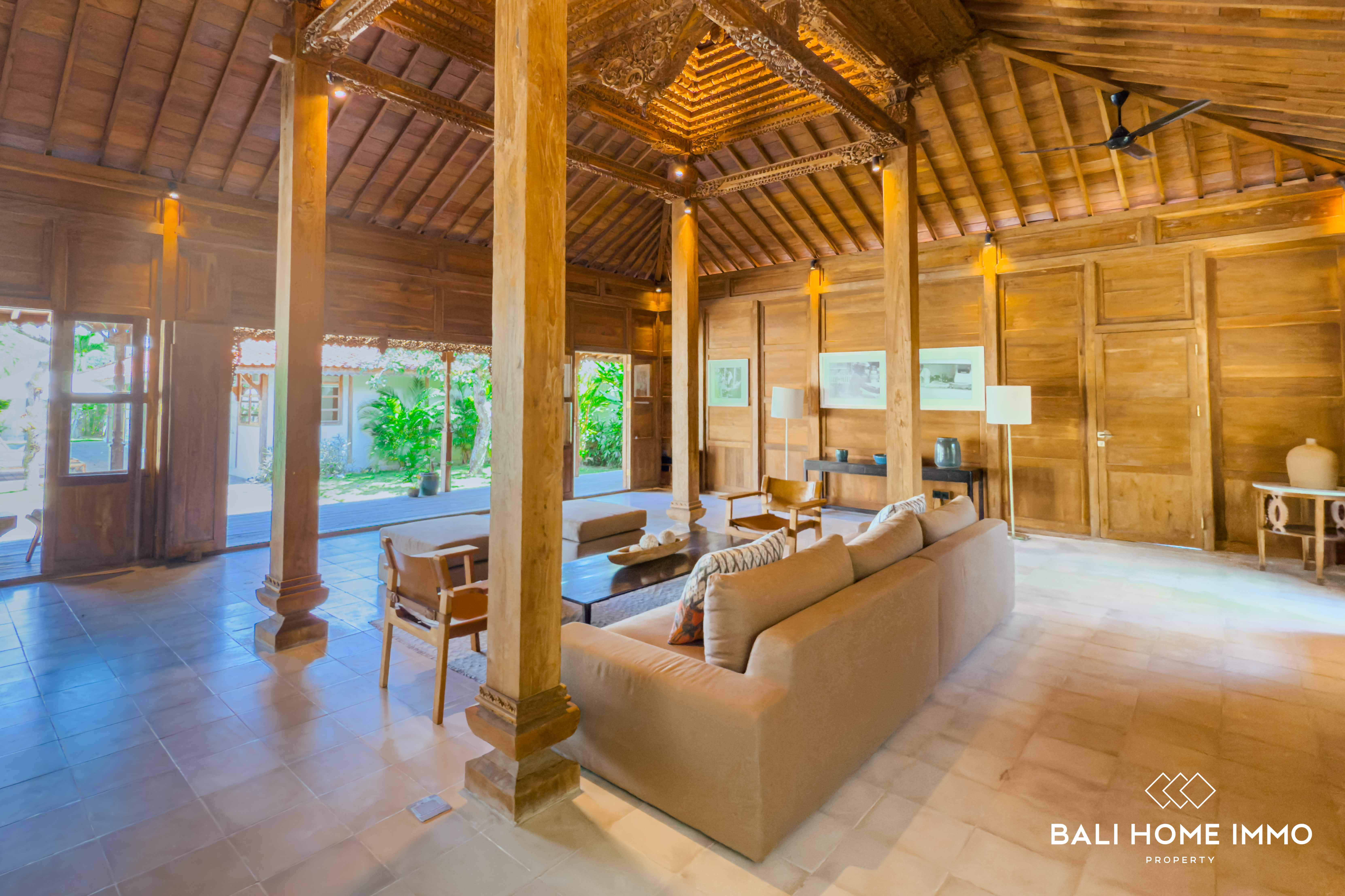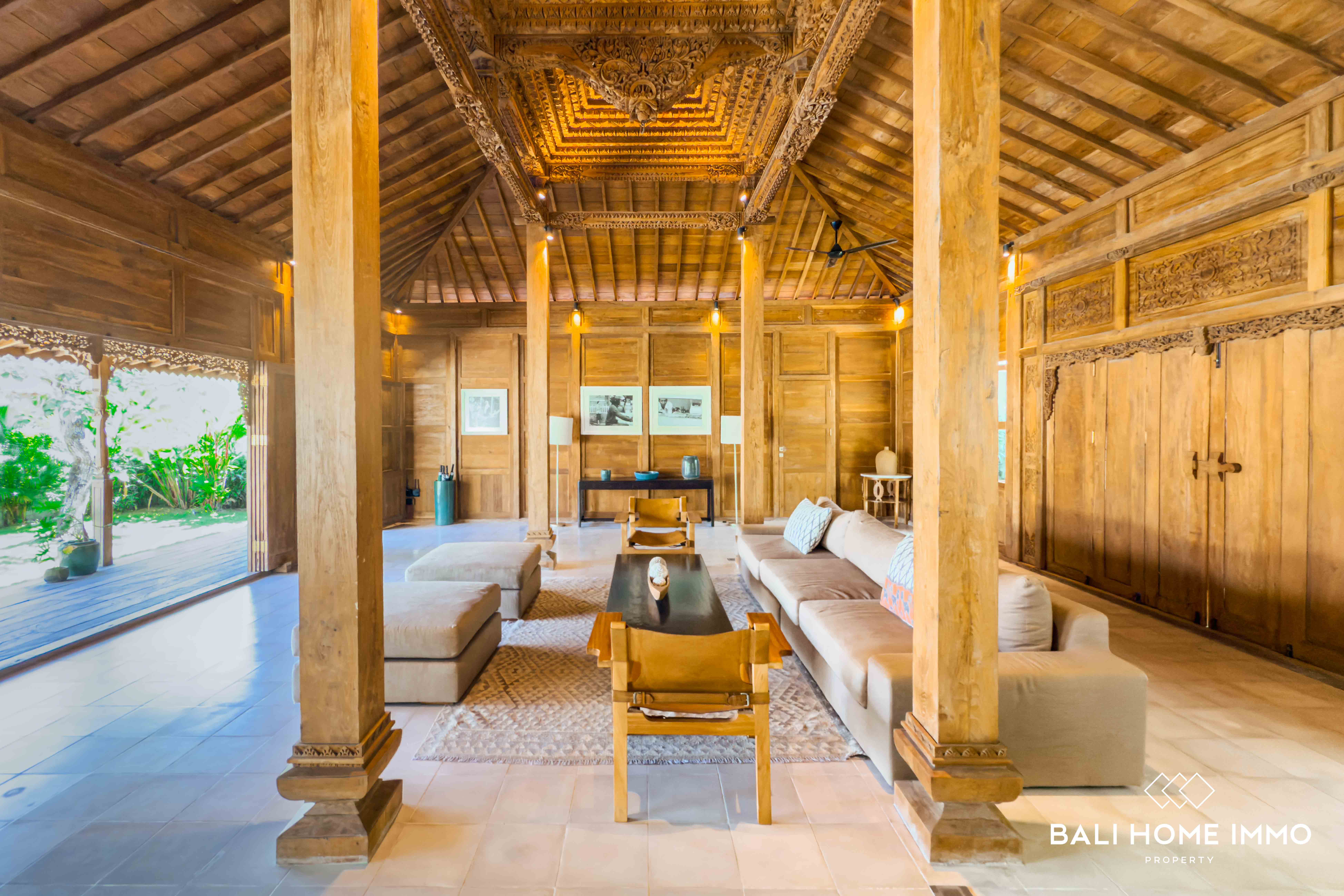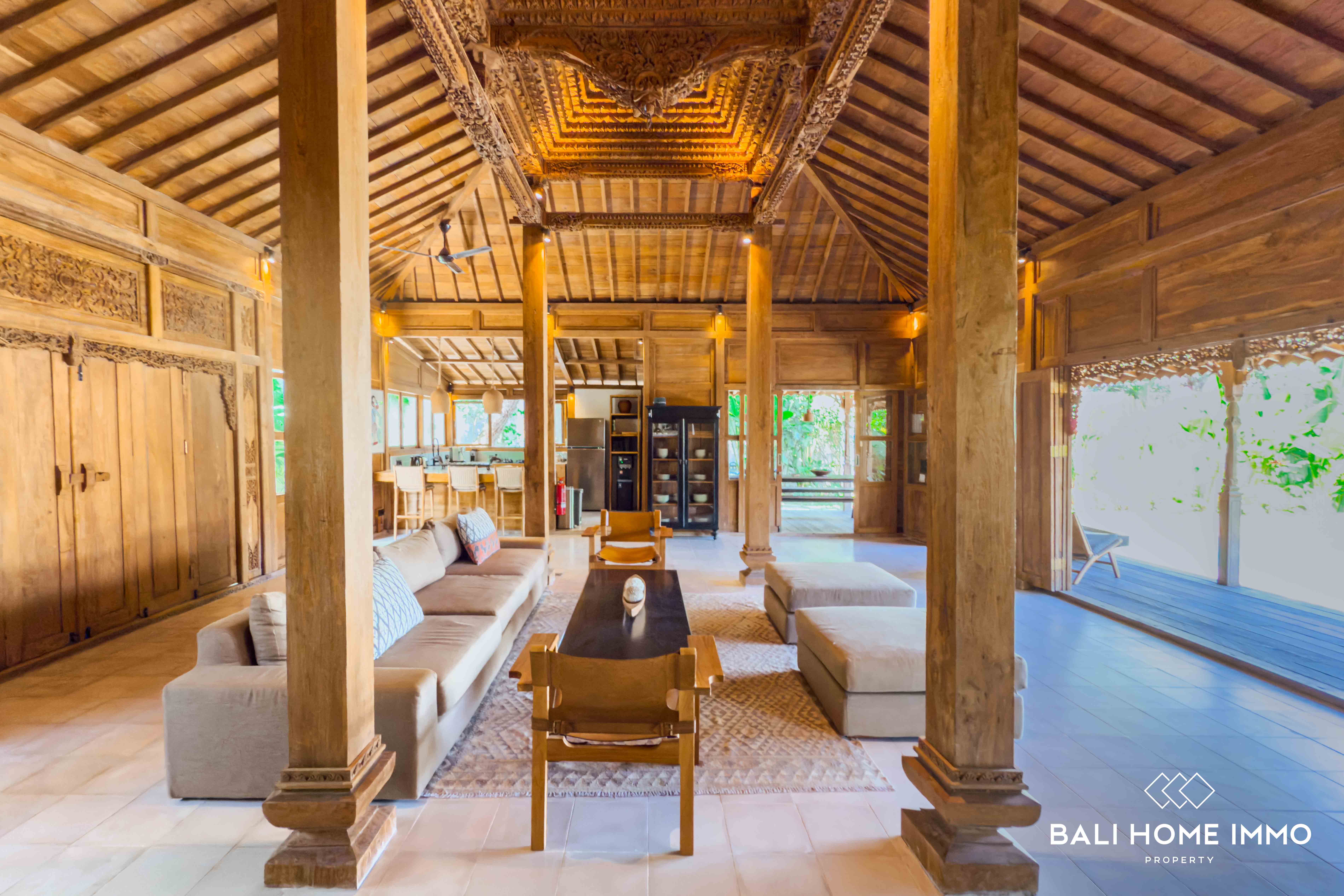 A serene five-bedroom wooden villa sits on 9.77 are of land in the heart of Uluwatu, blending traditional craftsmanship with modern comfort. Its striking wooden house style, combined with lush garden and pool views, creates a harmonious retreat in a touristic area.