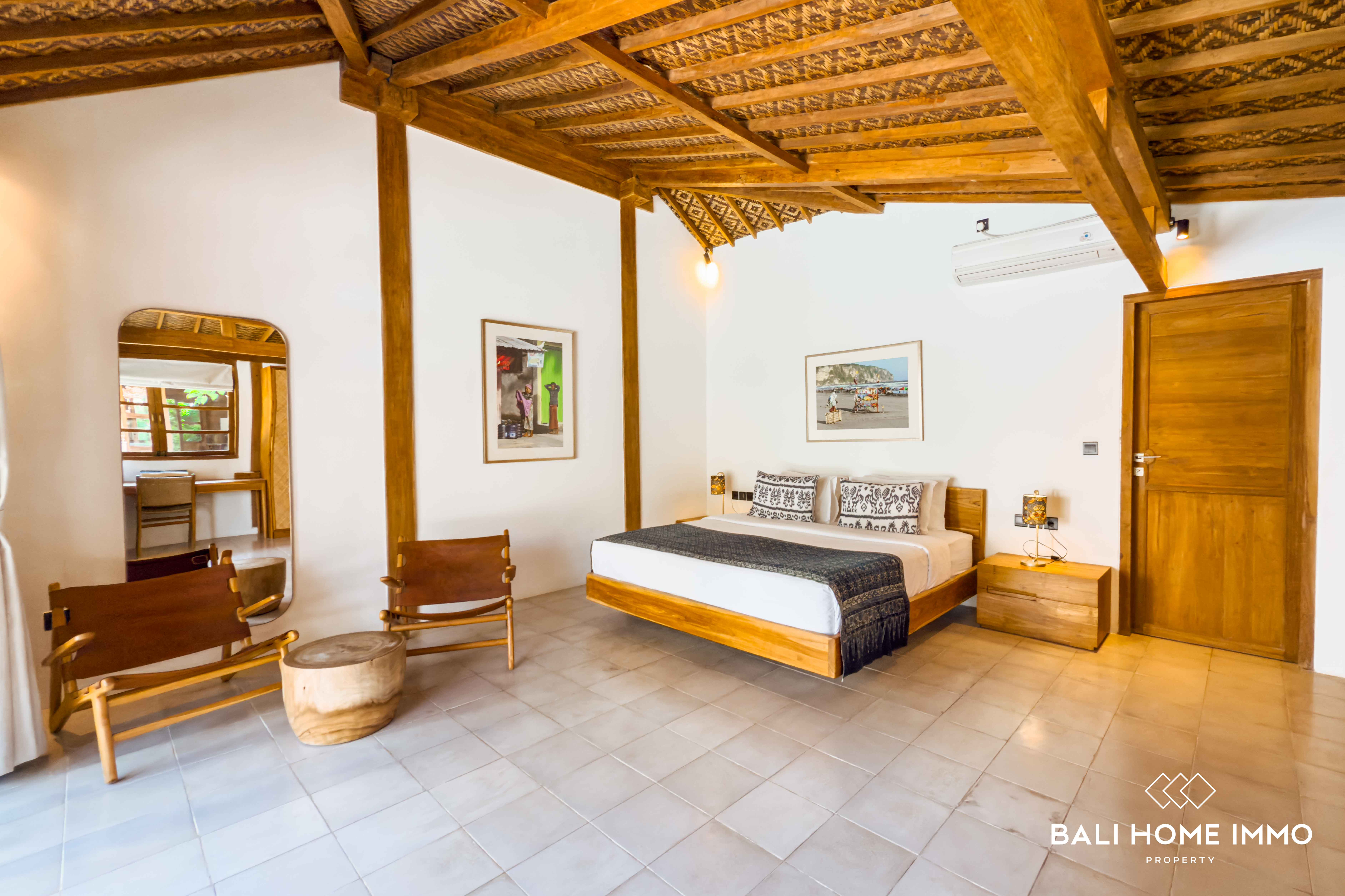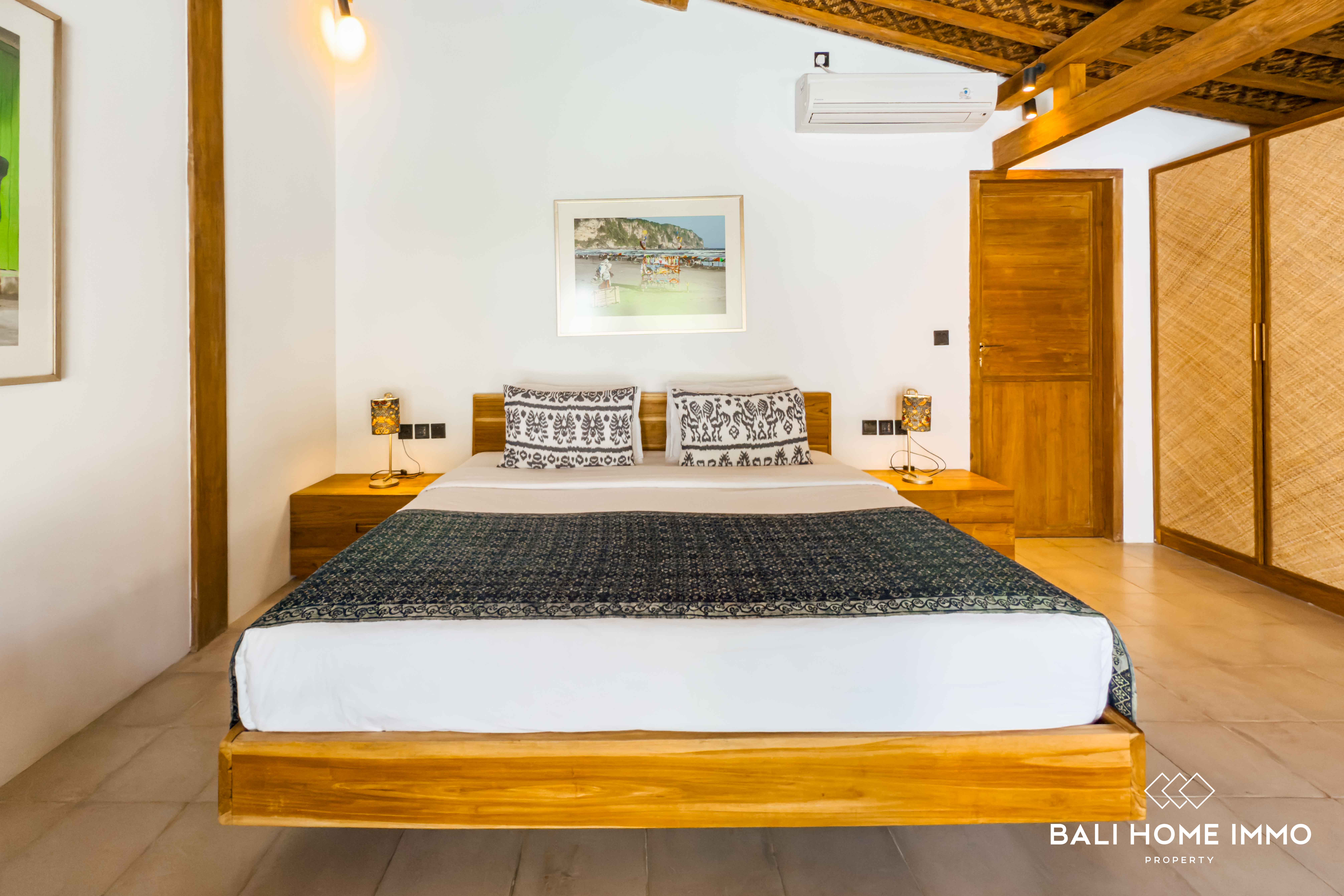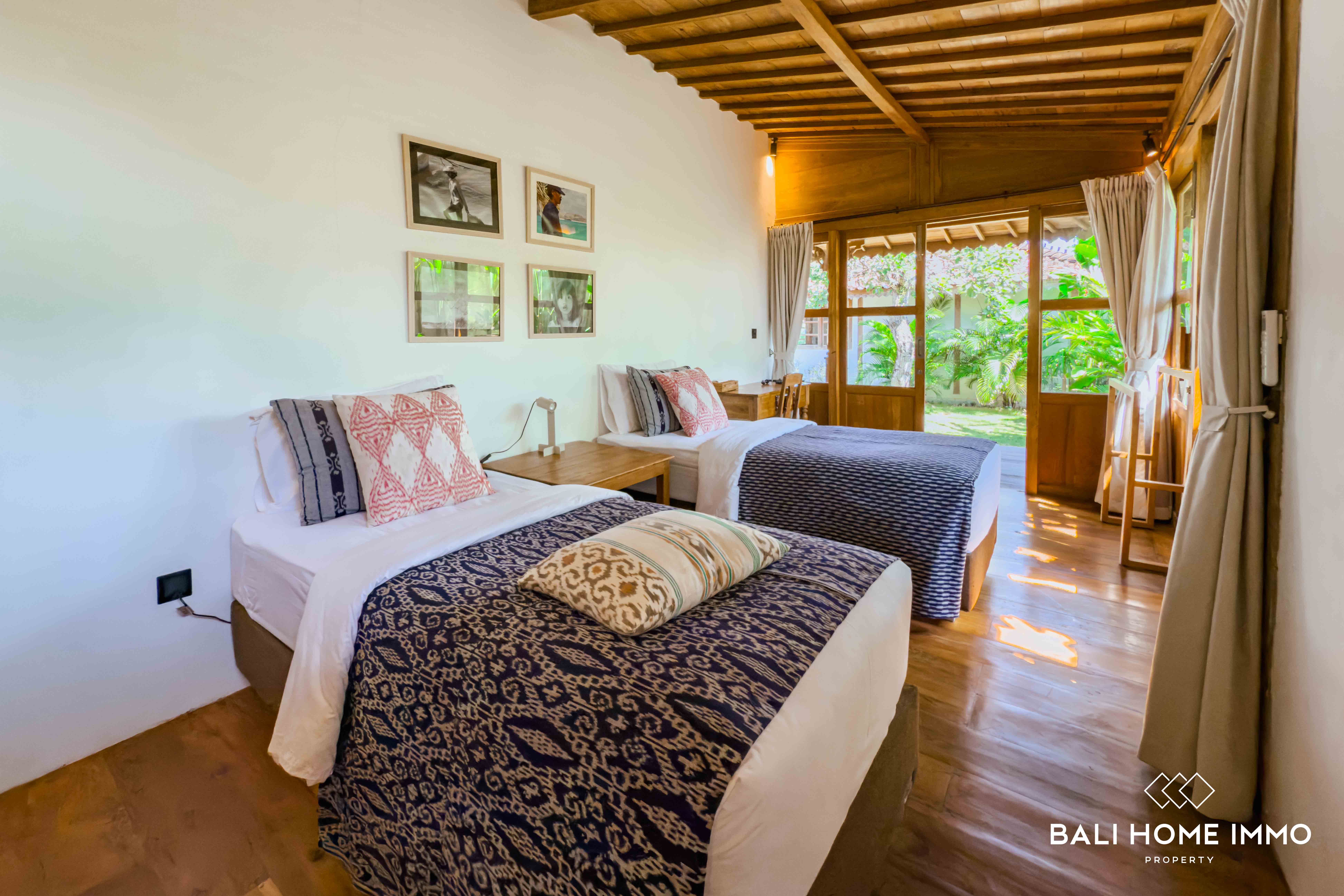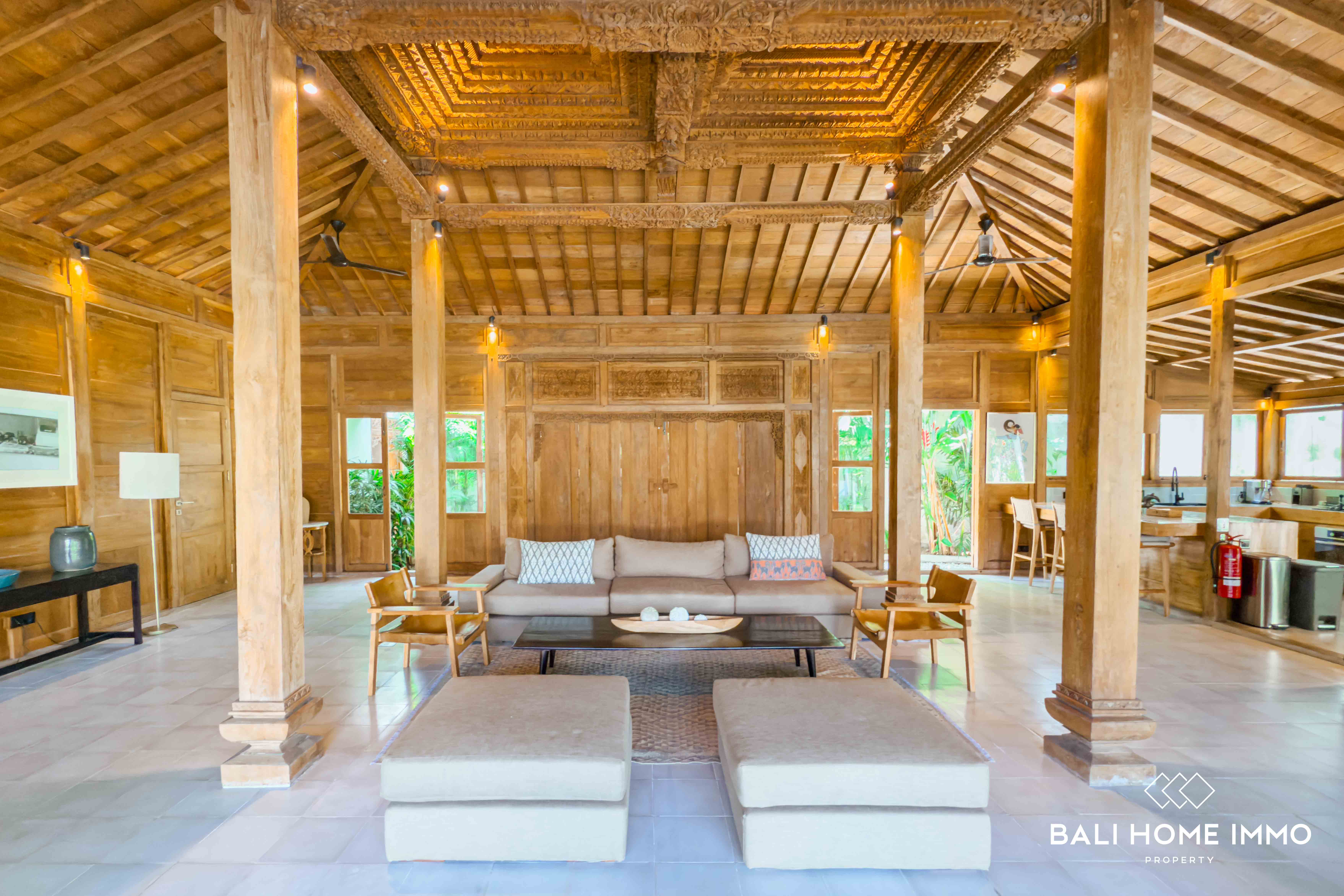 A serene five-bedroom wooden villa sits on 9.77 are of land in the heart of Uluwatu, blending traditional craftsmanship with modern comfort. Its striking wooden house style, combined with lush garden and pool views, creates a harmonious retreat in a touristic area.