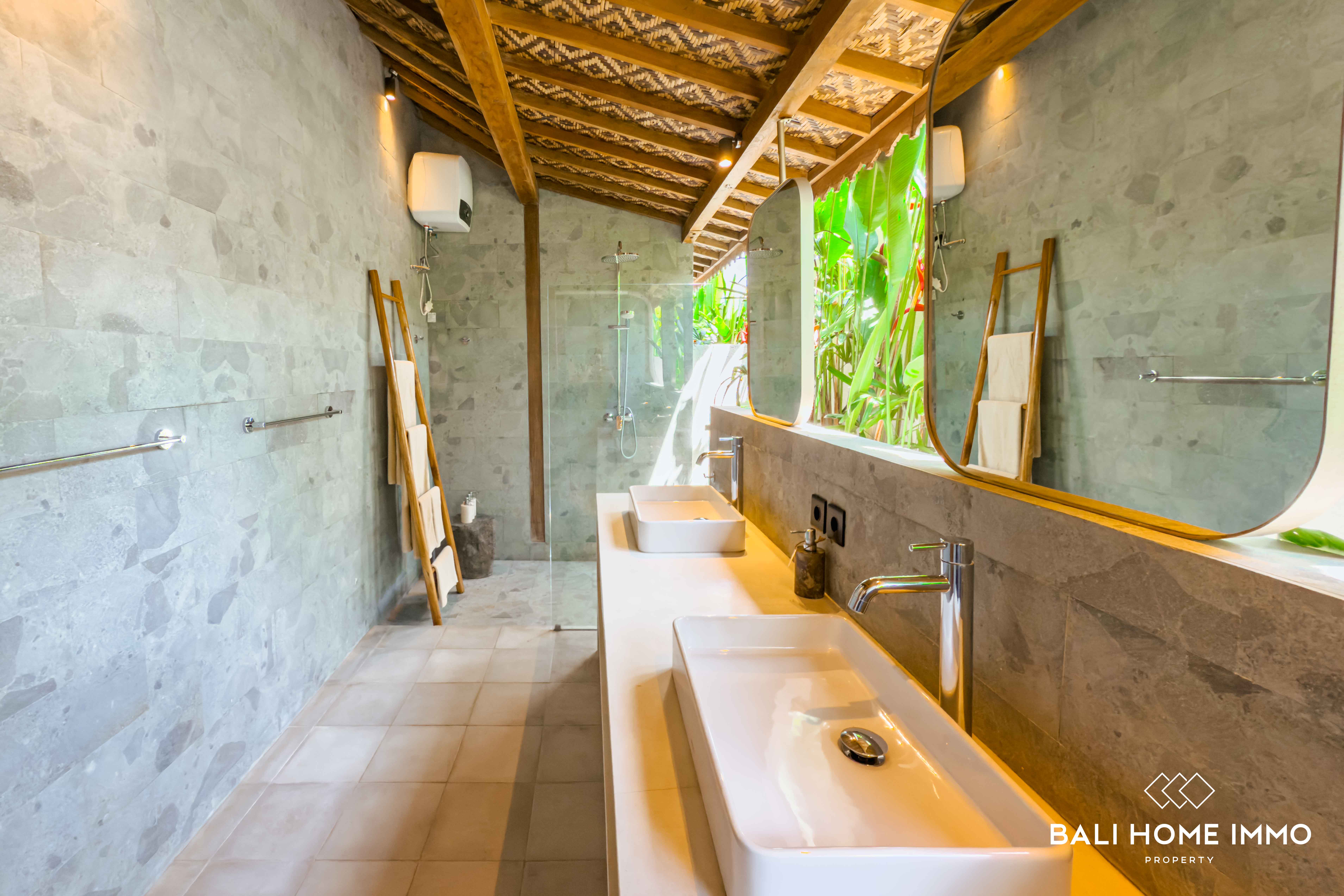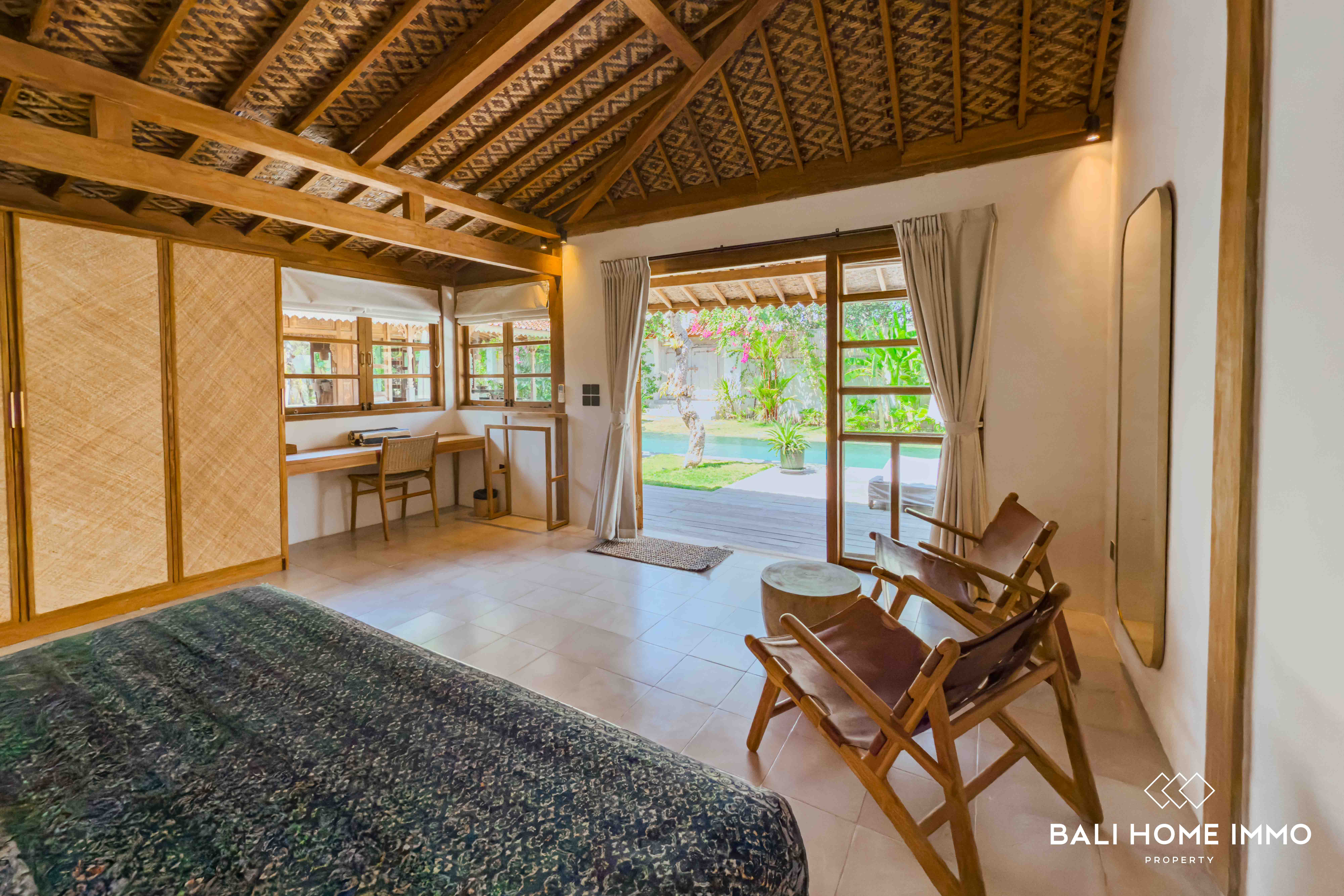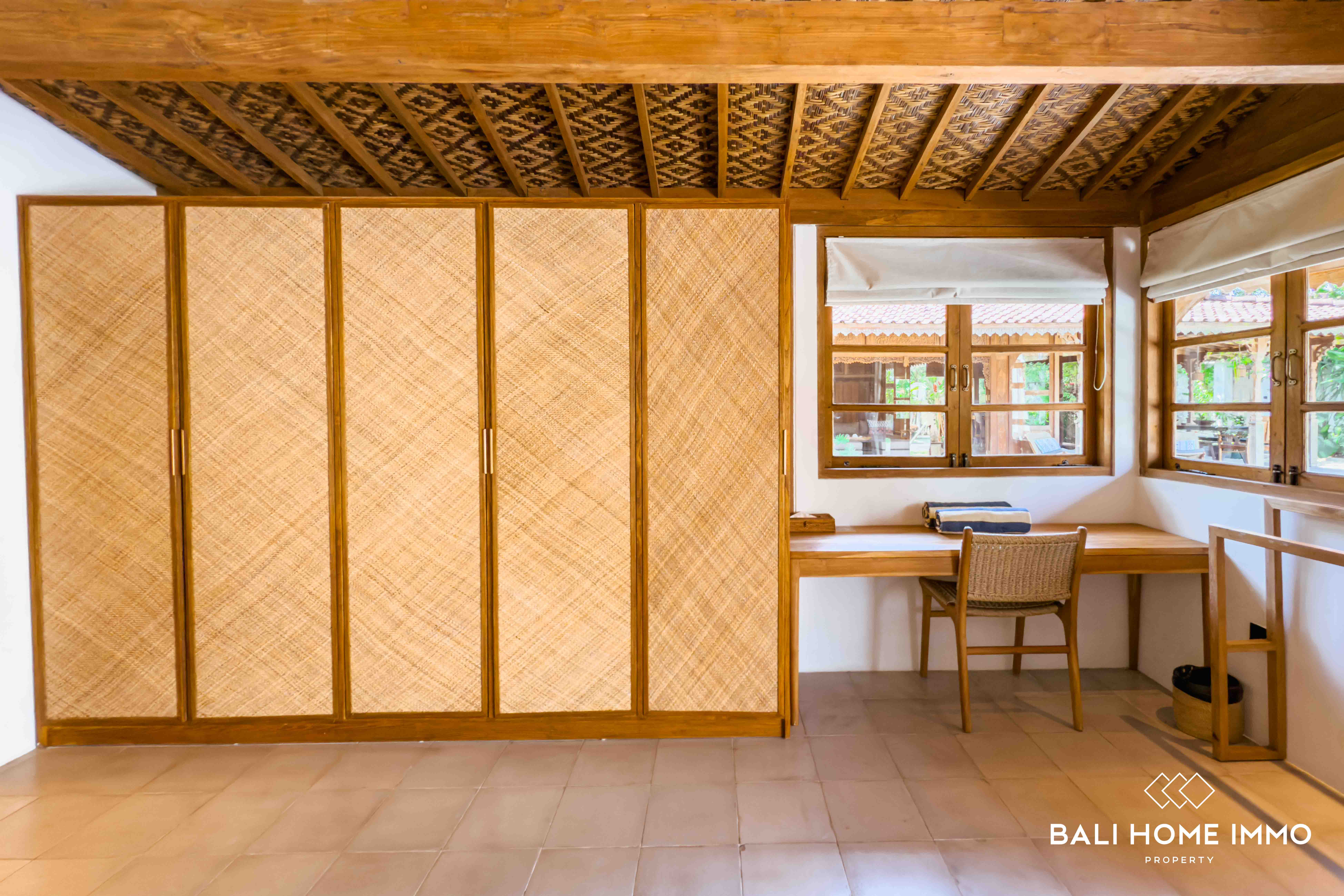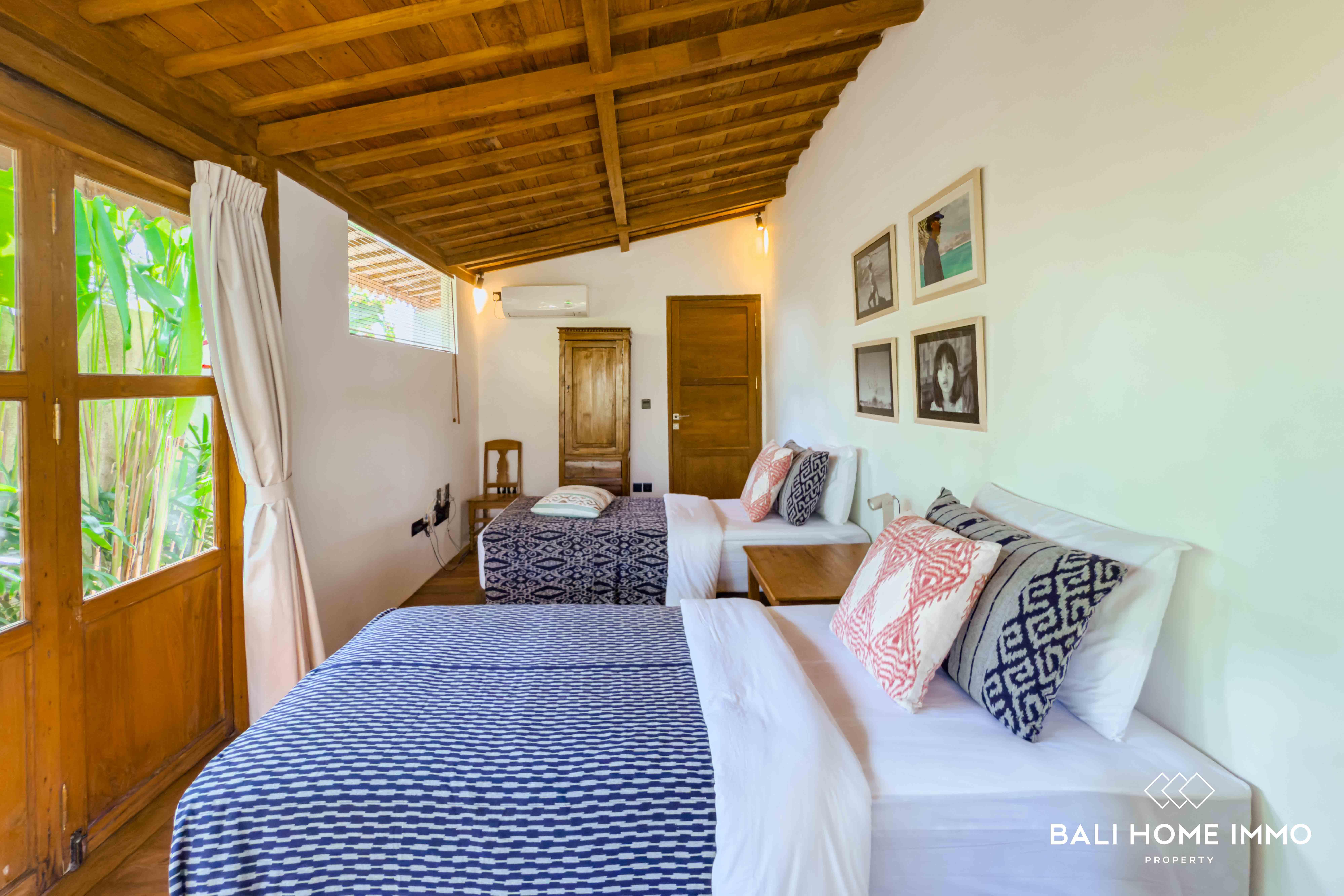 A serene five-bedroom wooden villa sits on 9.77 are of land in the heart of Uluwatu, blending traditional craftsmanship with modern comfort. Its striking wooden house style, combined with lush garden and pool views, creates a harmonious retreat in a touristic area.