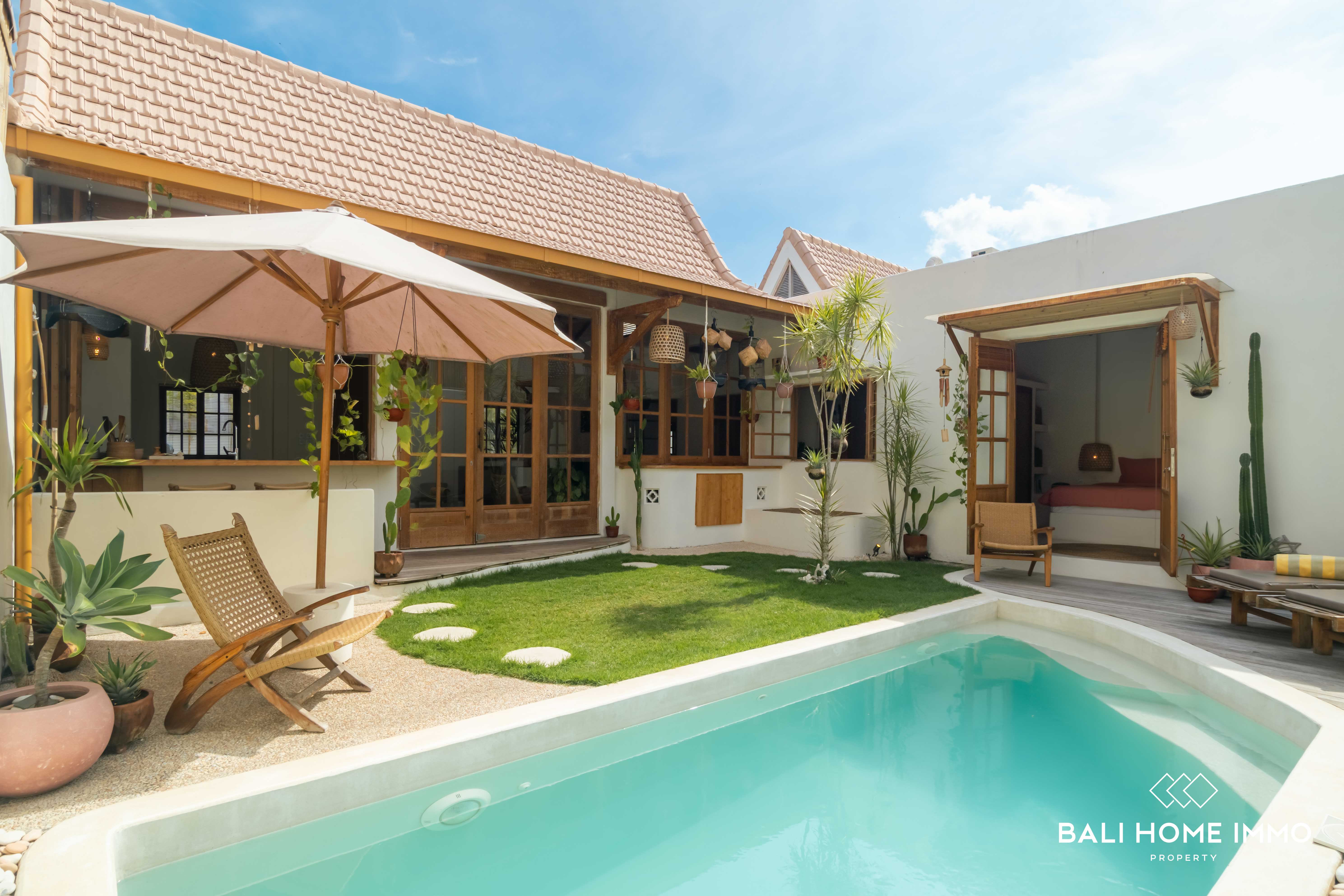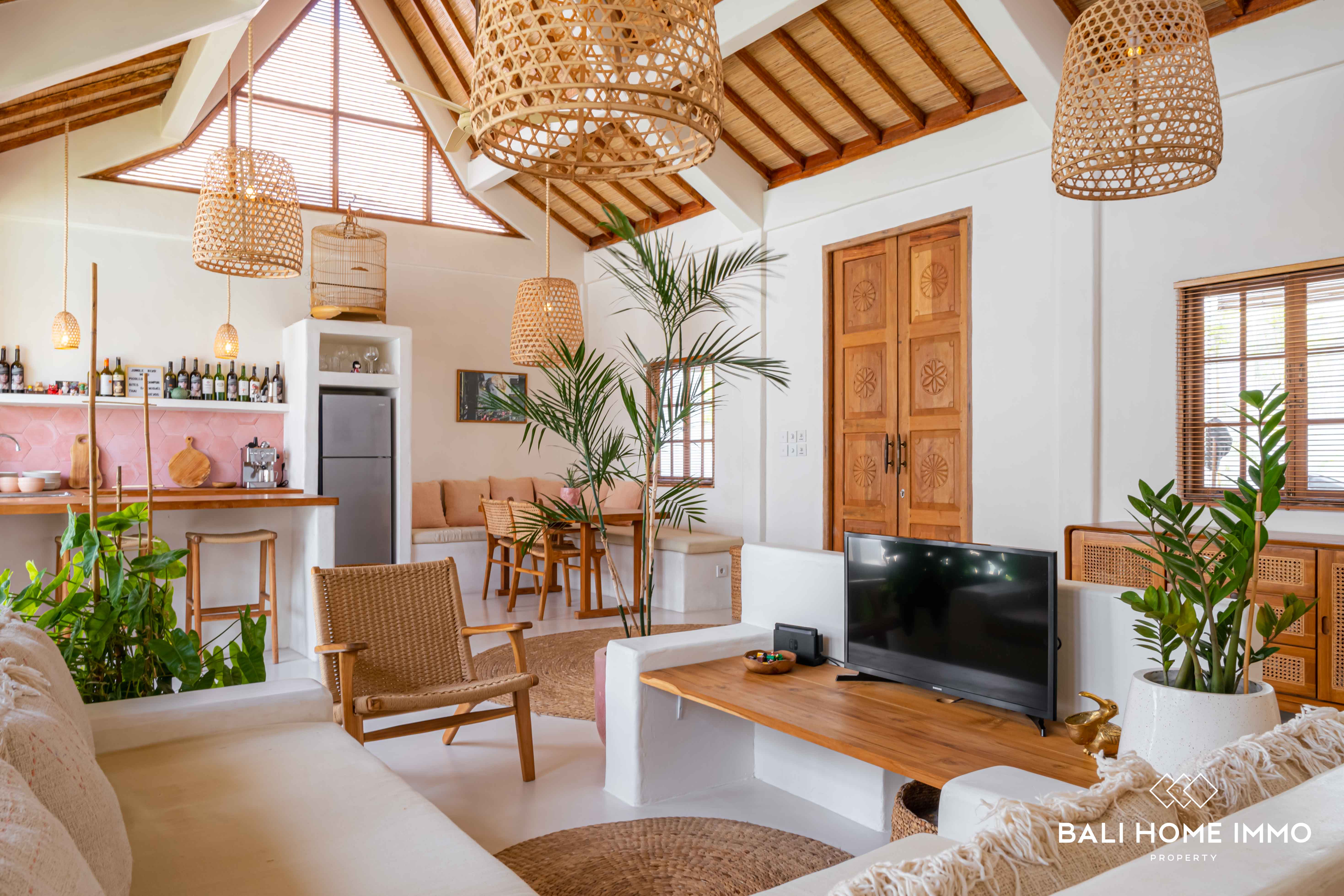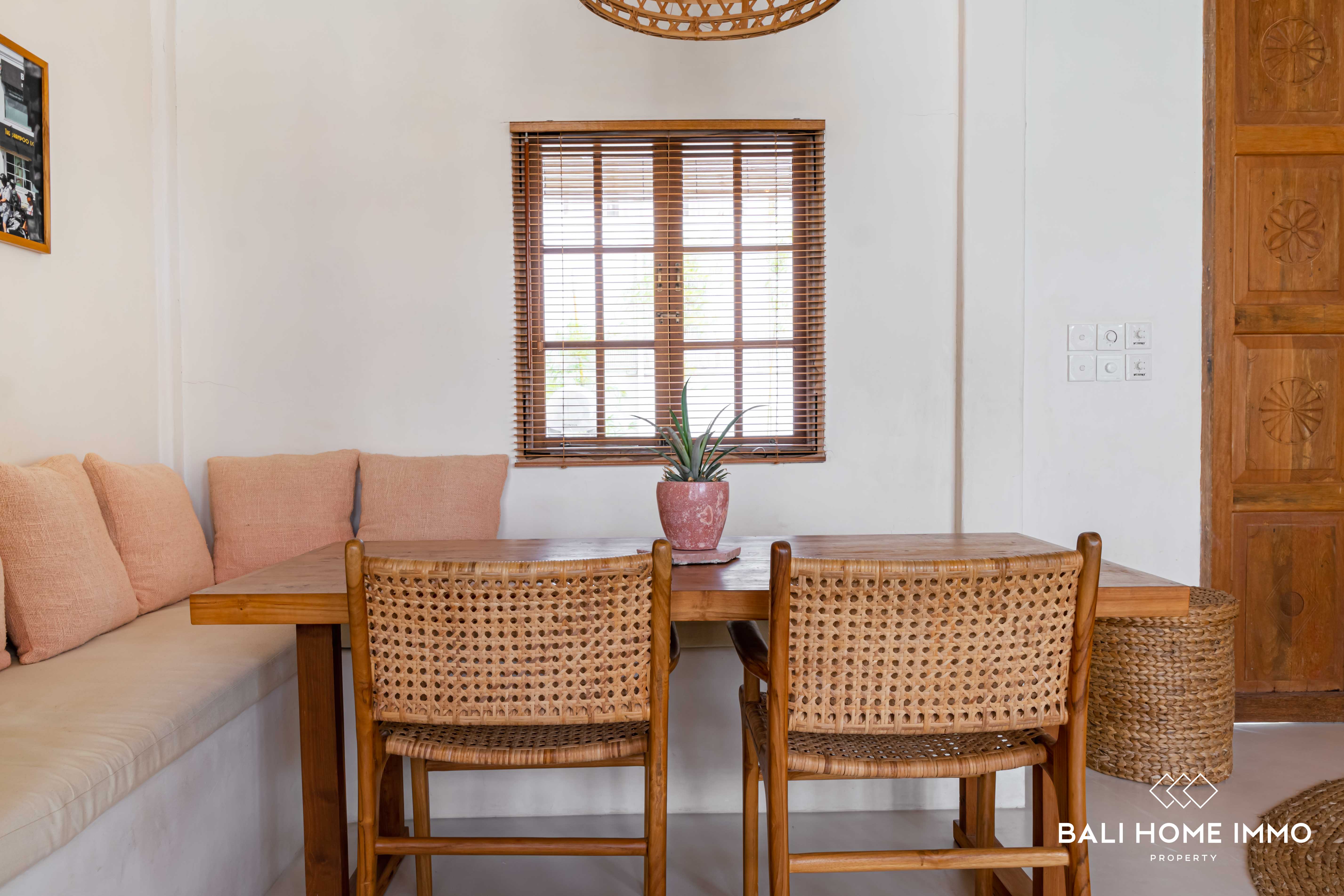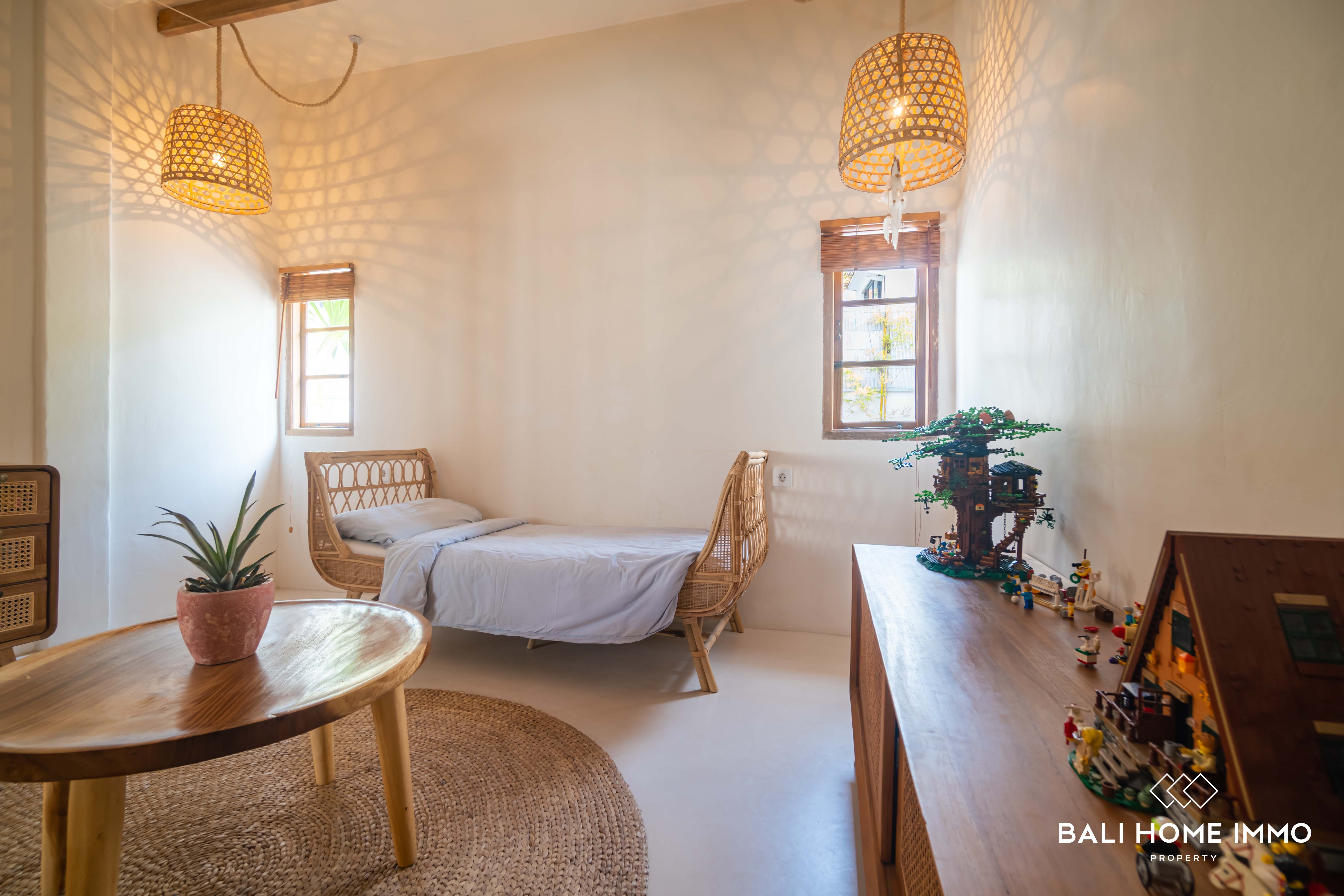 Nestled in the neighbourhood of Umalas, just a 6-minute drive from the renowned Cafe del Mar and the beach, this 3-bedroom villa offers a Mediterranean escape. Occupying 2 are of land with a ย 107 mยฒ building on a single level, this villa showcases Mediterranean design with warm furnishings.