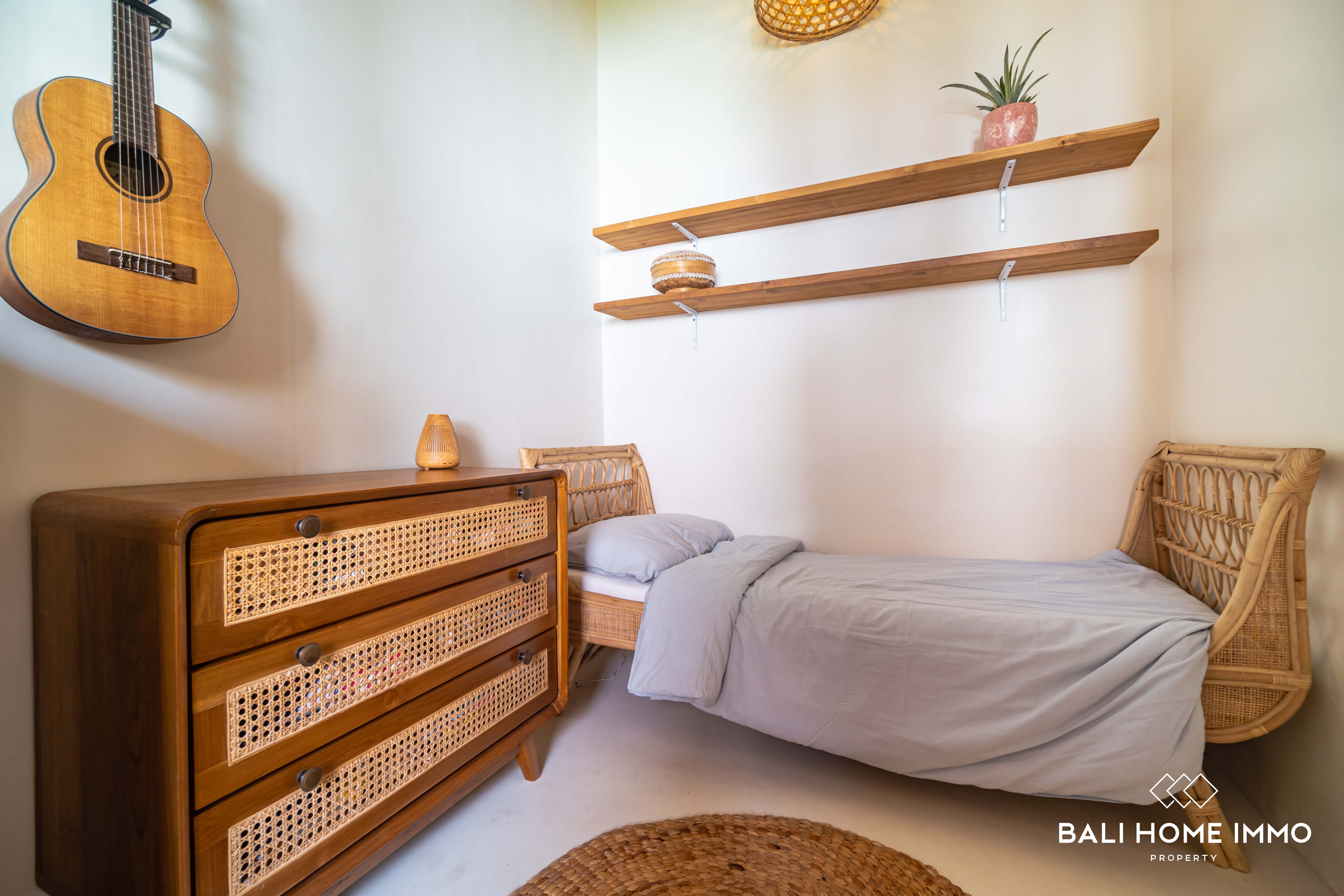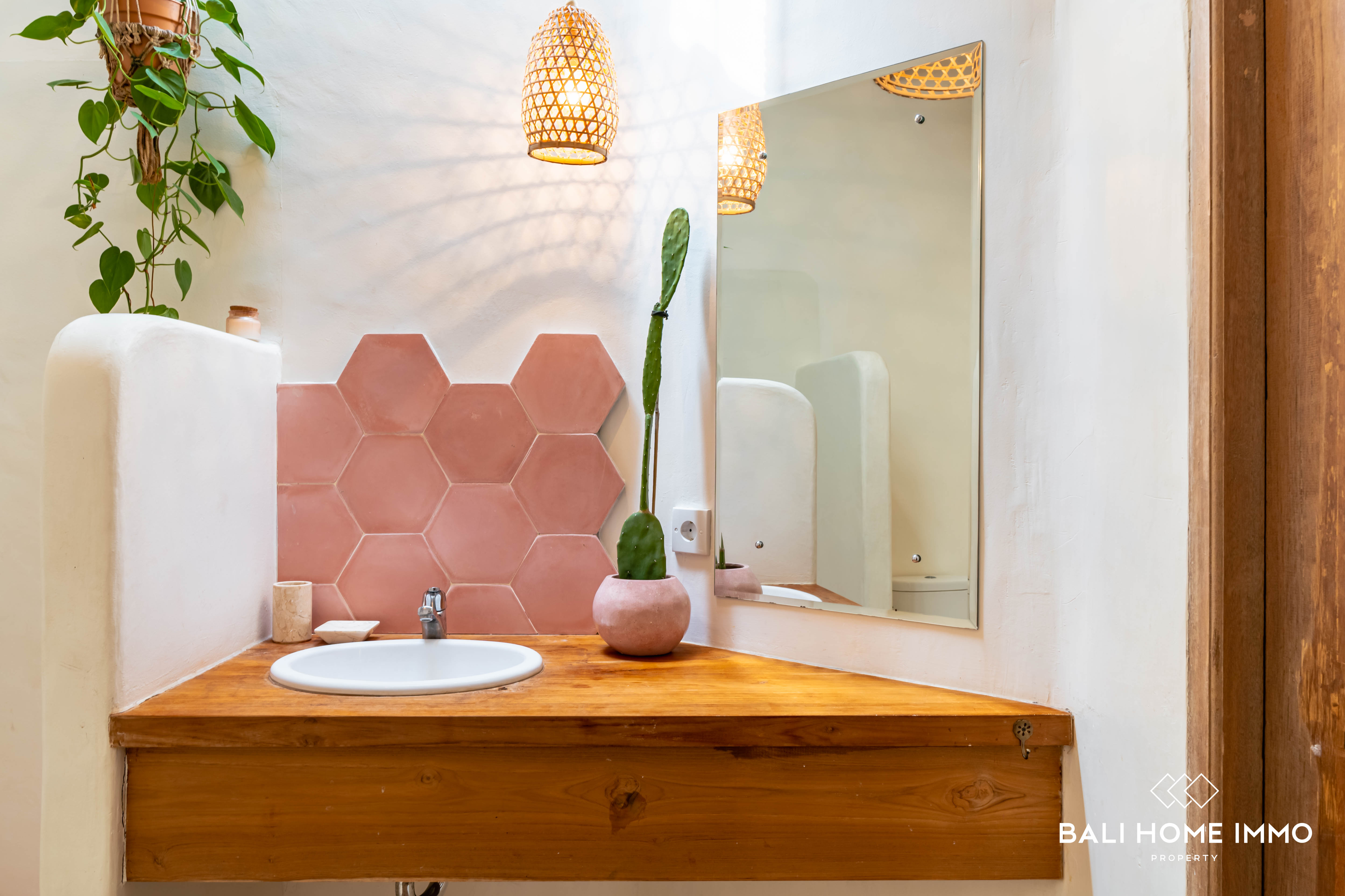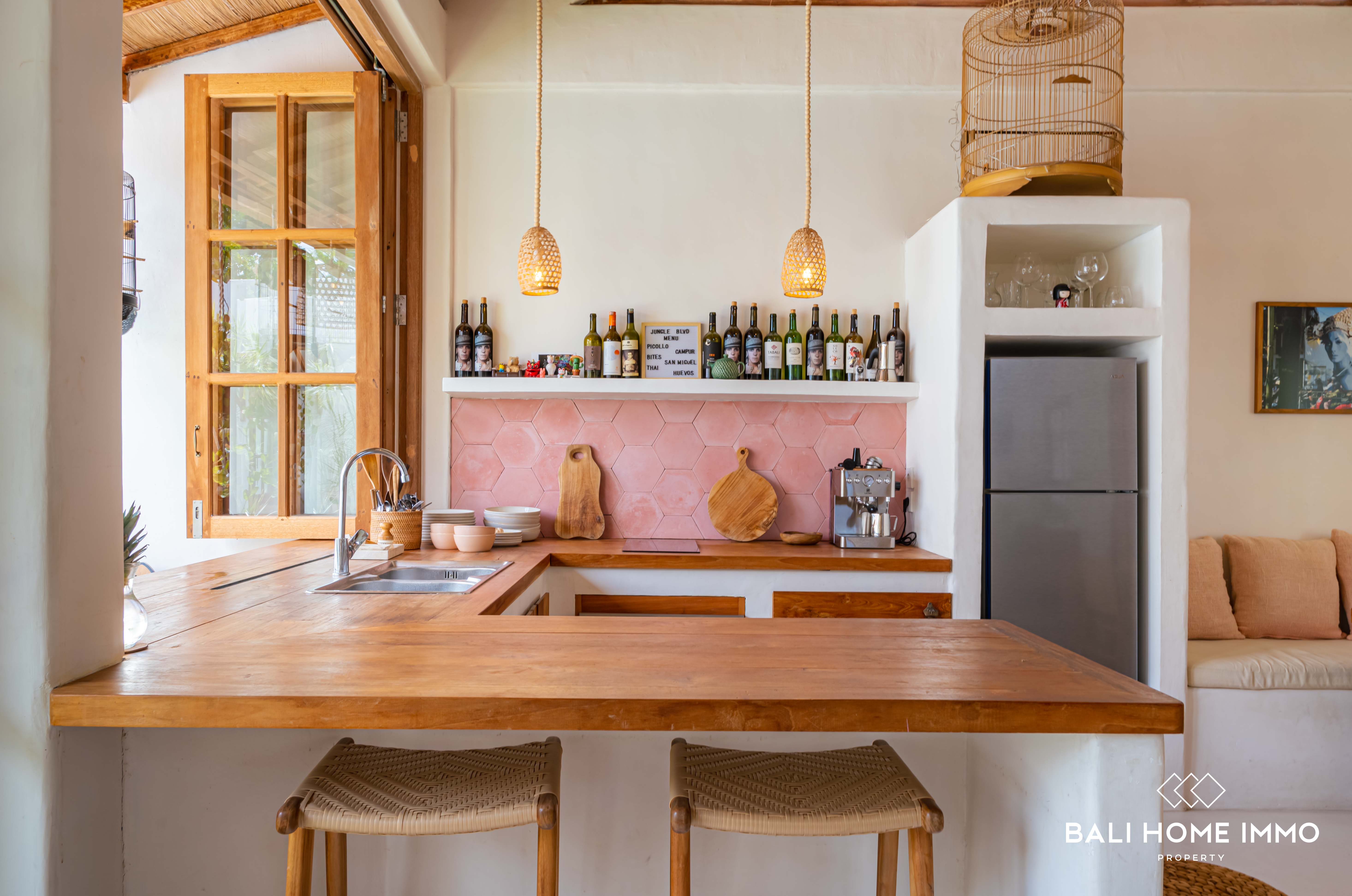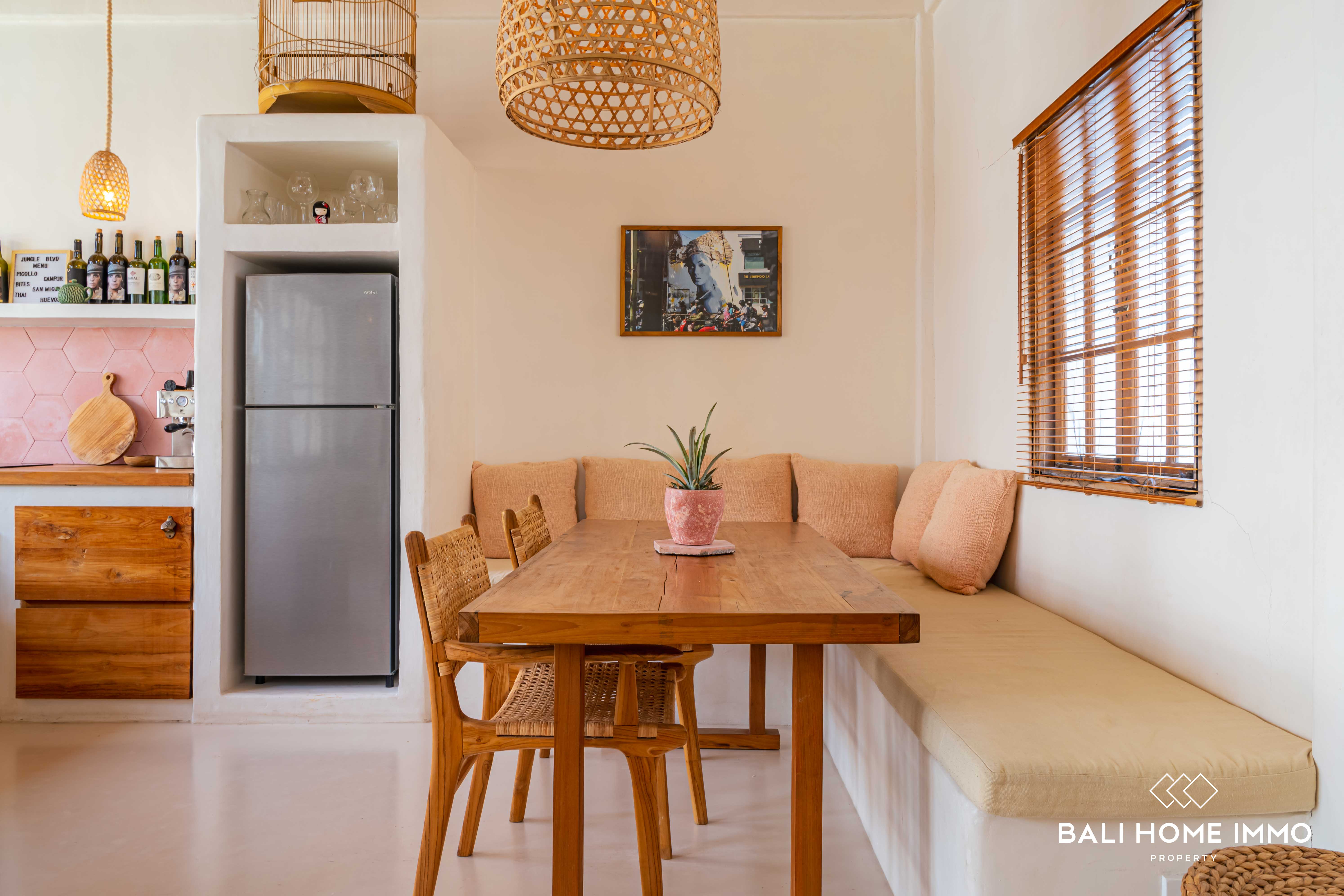Nestled in the neighbourhood of Umalas, just a 6-minute drive from the renowned Cafe del Mar and the beach, this 3-bedroom villa offers a Mediterranean escape. Occupying 2 are of land with a ย 107 mยฒ building on a single level, this villa showcases Mediterranean design with warm furnishings.