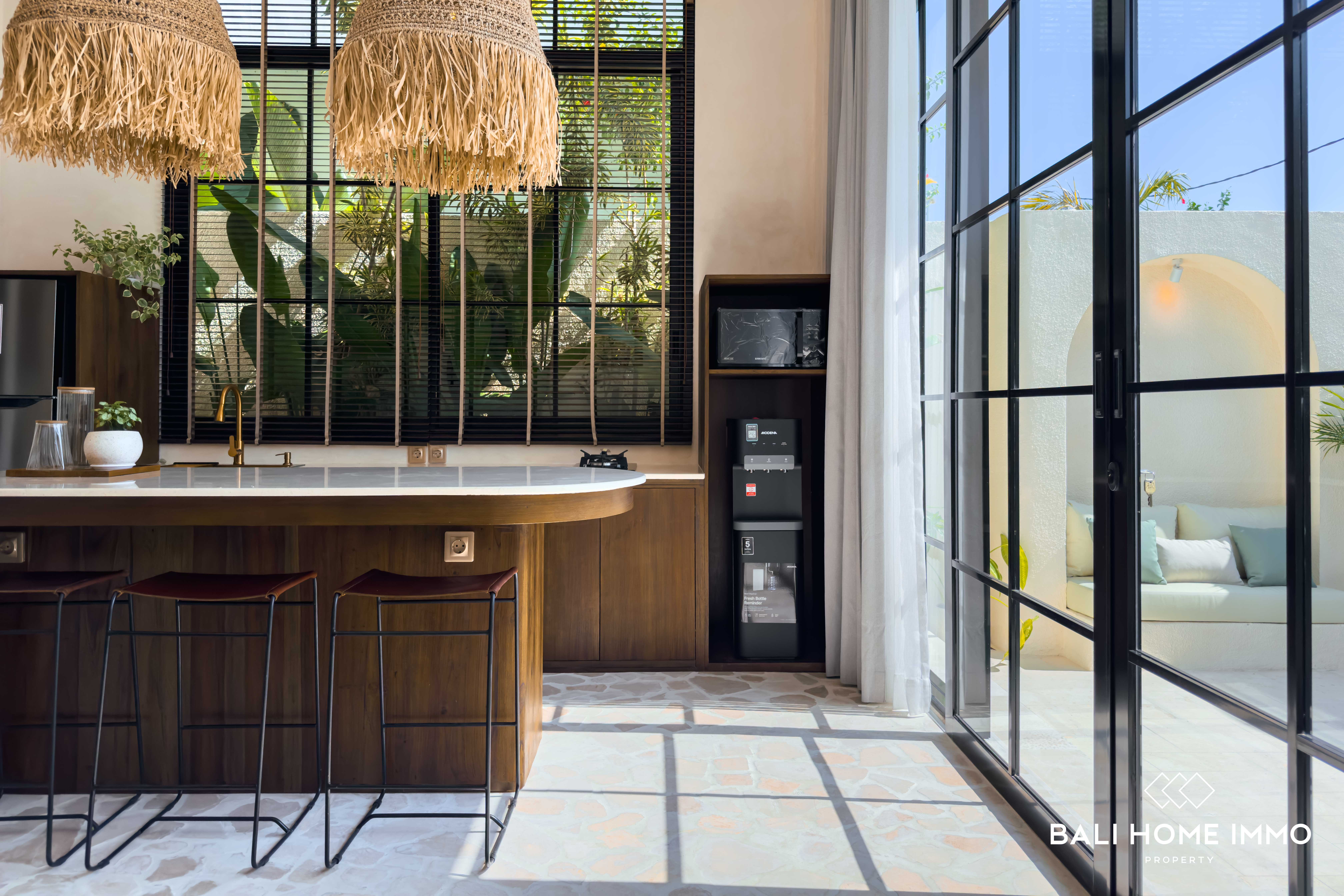 Located in the residential area in Kerobokan Kelod, with a 15-minute drive from Batu Belig beach and a 20-minute drive from Canggu, this modern residence beckons those in pursuit of a distinctive blend of comfort and style, shaping the perfect sanctuary for those yearning for a contemporary lifestyle.