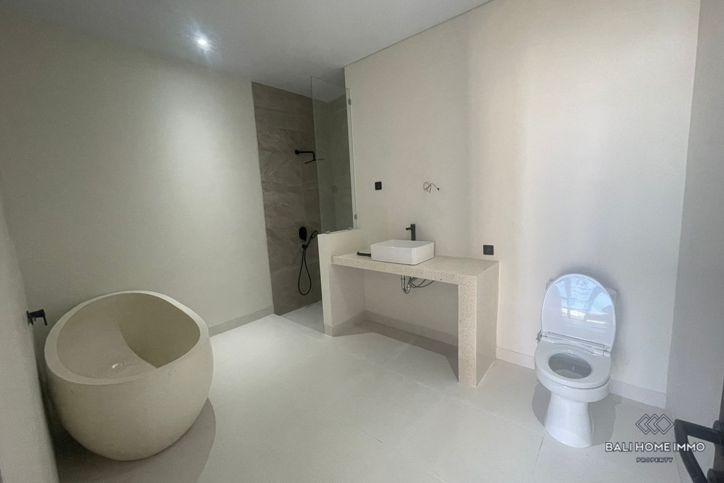 Situated in the tranquil neighborhood of Umalas, this modern villa offers a harmonious blend of serenity and convenience, with numerous cafes and restaurants just a short distance away. Spanning 4 are of land, the villa features a spacious 200 mยฒ single-story layout, completed in 2024, and is nestled within a peaceful residential area.