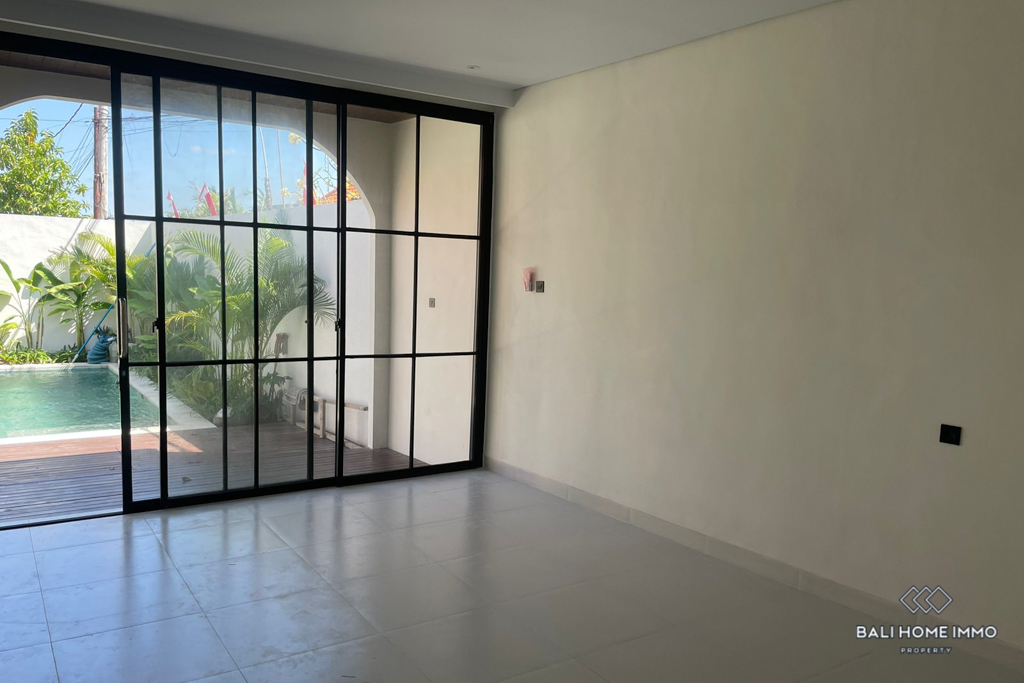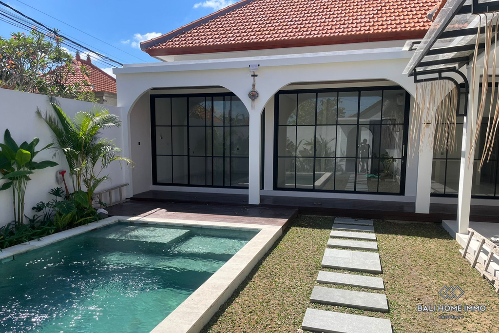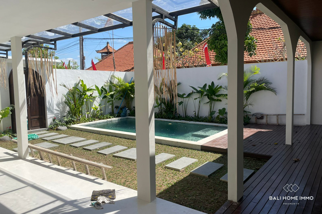 Outside, a lush garden surrounds the inviting swimming pool, creating a private oasis perfect for relaxation. The villa comes semi-furnished, allowing for personal touches to be added while maintaining its modern appeal. With a leasehold period of 30 years, this property offers a long-term opportunity to enjoy contemporary living in the sought-after area of Umalas.