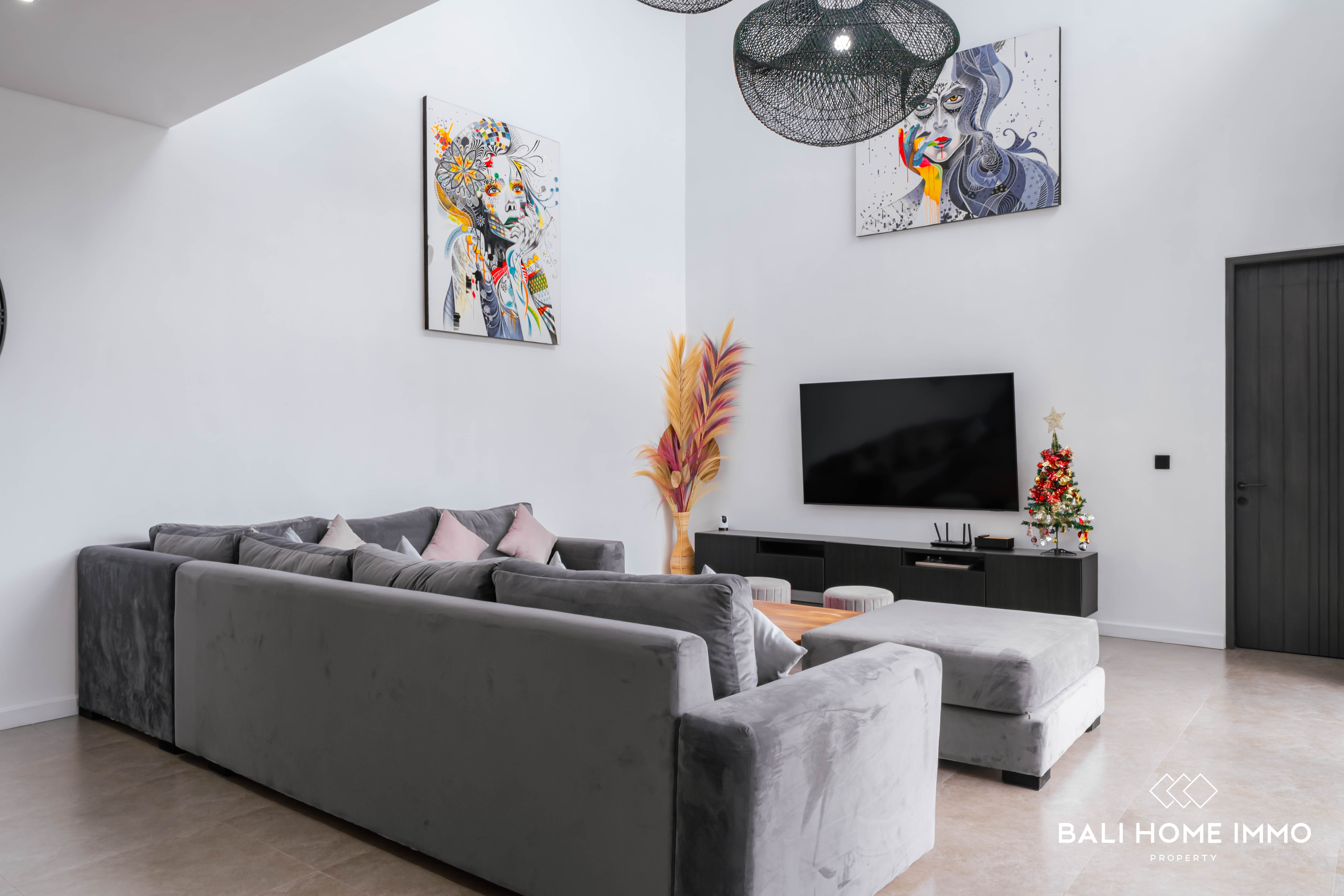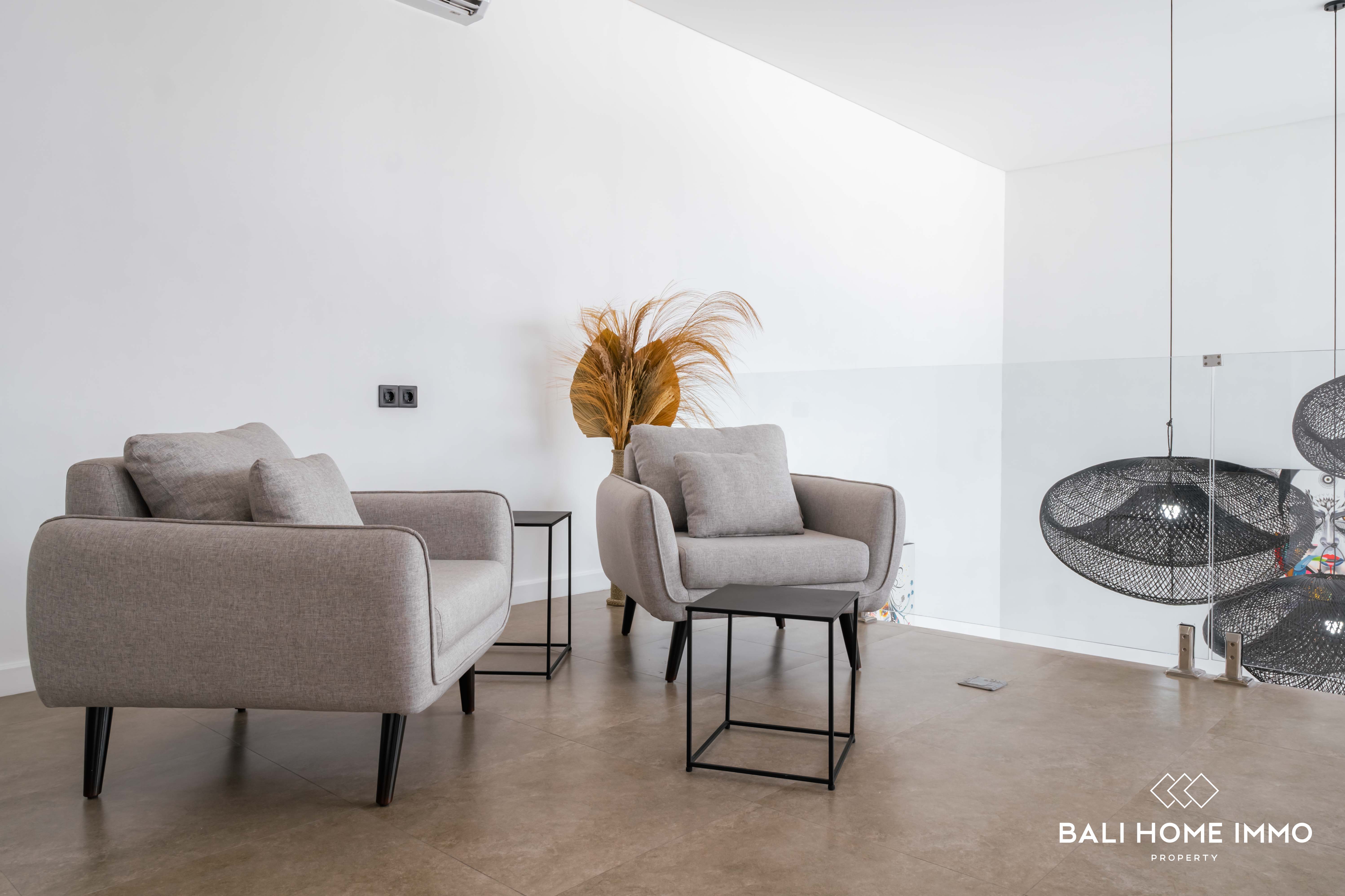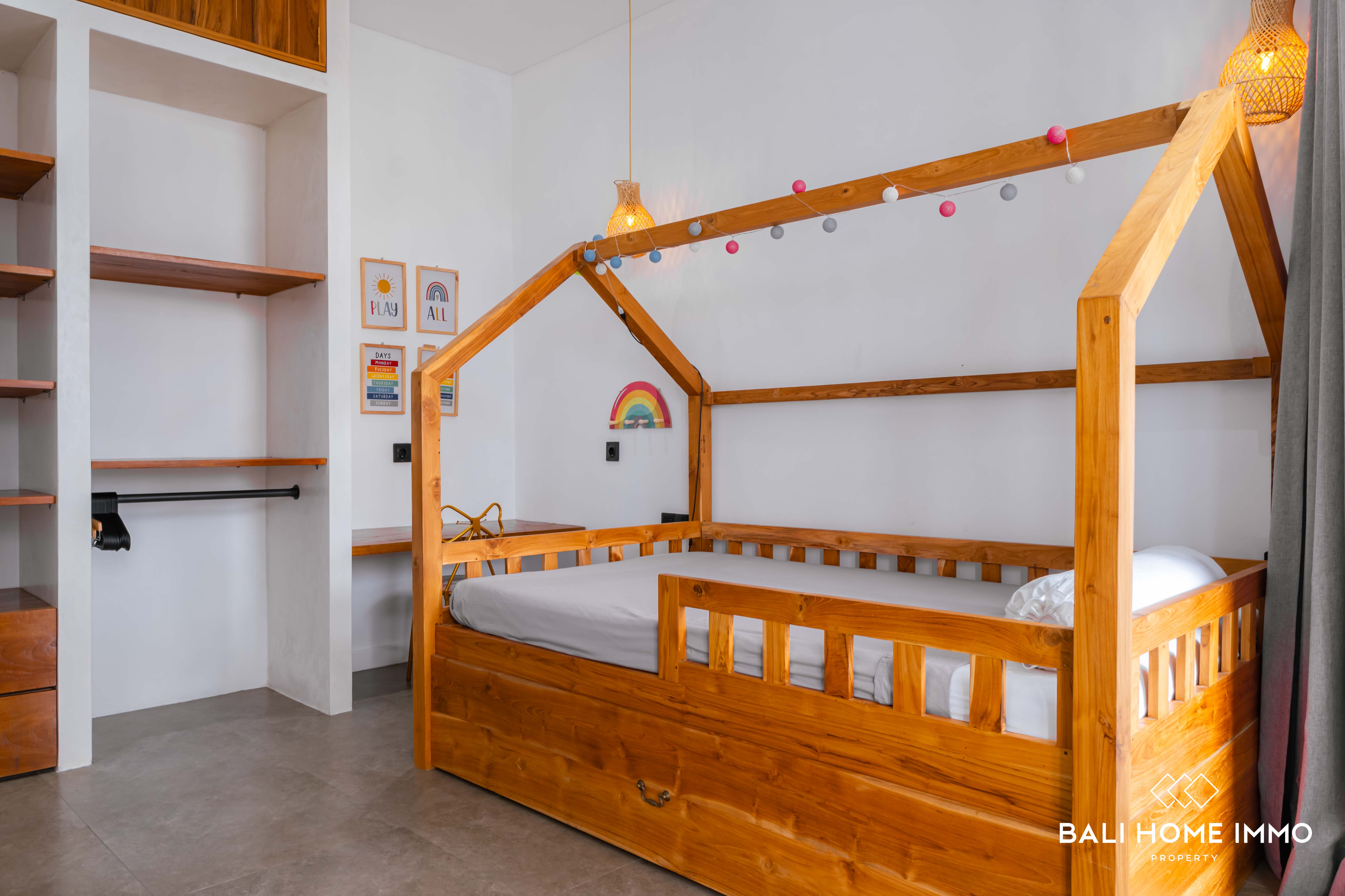 On the second floor, you'll find three additional bedrooms, each with its own ensuite bathroom, ensuring privacy and comfort for all residents. There is also a versatile corner space that can be used as a childโs play area or a second living room, along with a balcony overlooking the pool. With a 28-year lease and the option to extend, this villa is an ideal home for families seeking flexible mobility in a prime location or an excellent opportunity for a holiday or investment property in Bali.