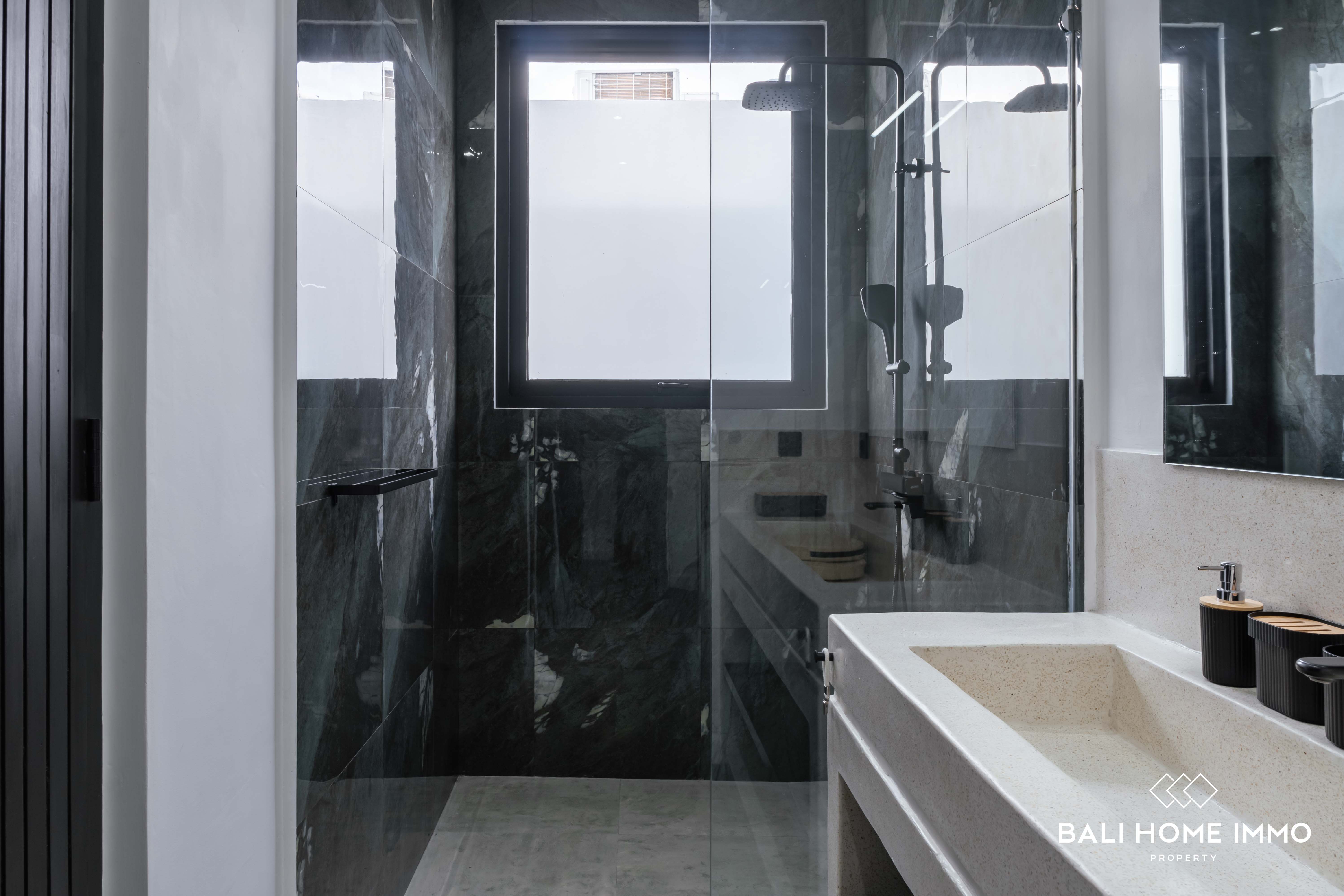 This stunning brand-new villa is located in the highly sought-after area of Umalas, just 500 meters from Jalan Raya Kerobokan and a short 6-minute drive to the French School. Within walking distance, you'll find a variety of international cafes and numerous convenient places, making this villa an excellent choice for those seeking a vibrant and accessible neighborhood.