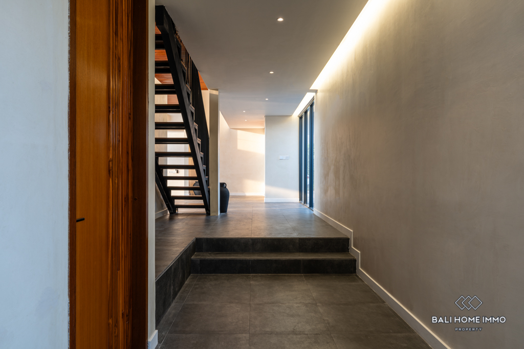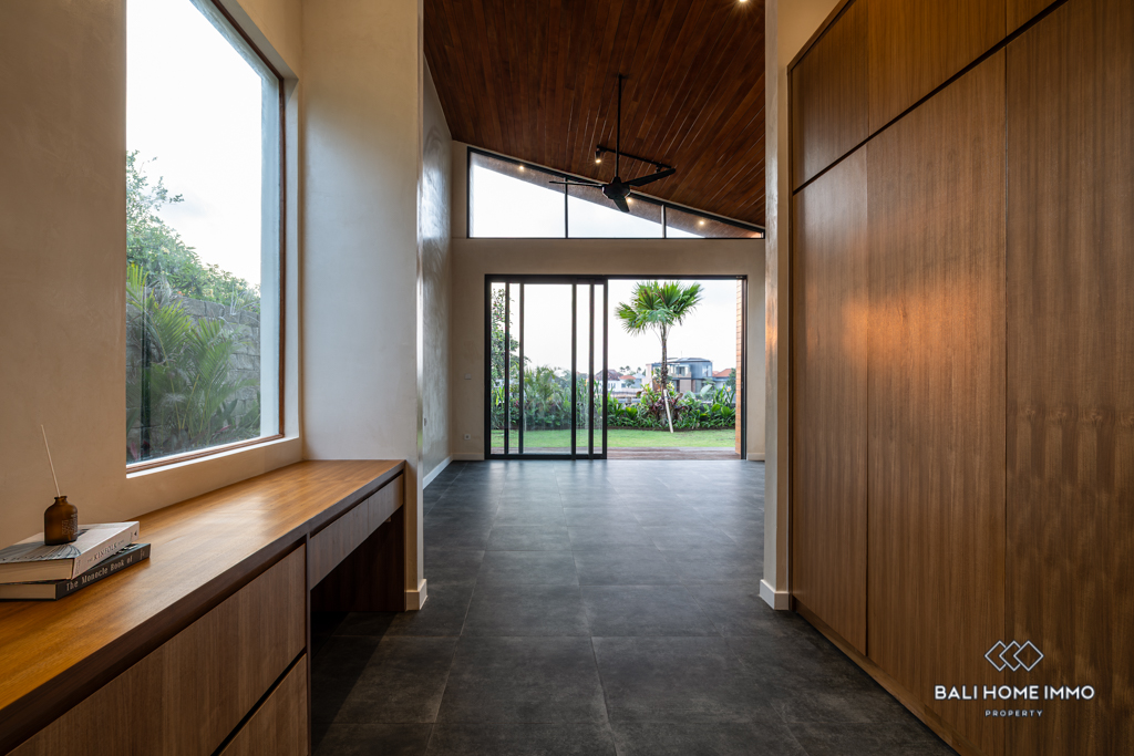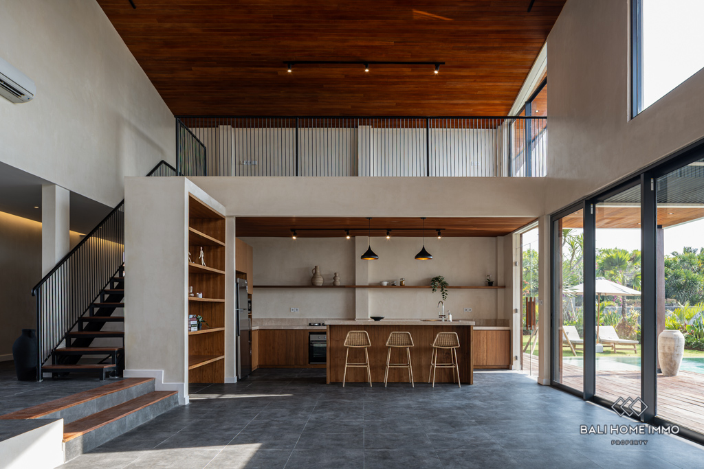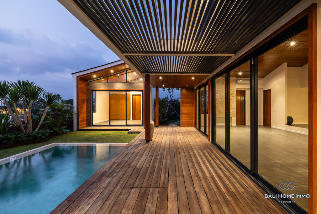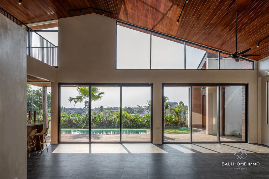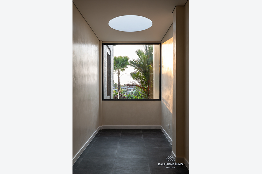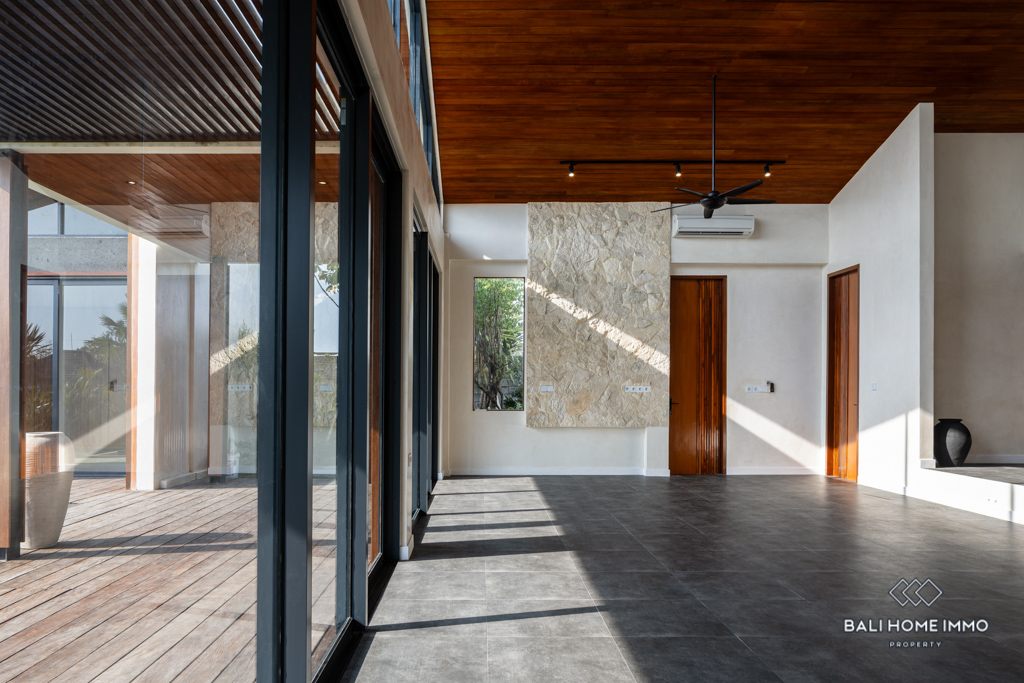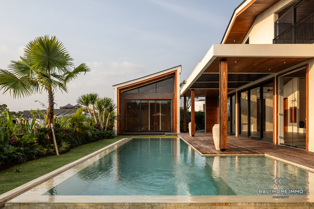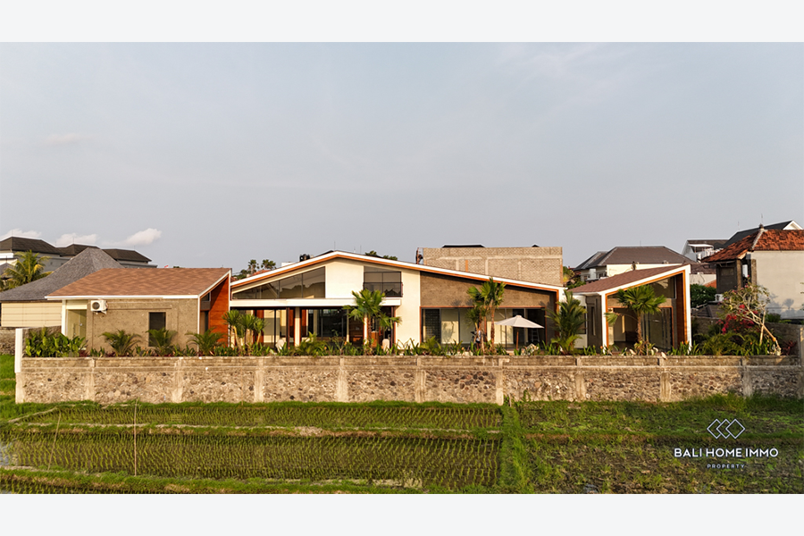 This modern villa is located in the residential area of Umalas. Spanning 317 sqm of building and 8-are of land, it is surrounded by several convenient amenities and is only a 19-minute drive from the beautiful beaches.