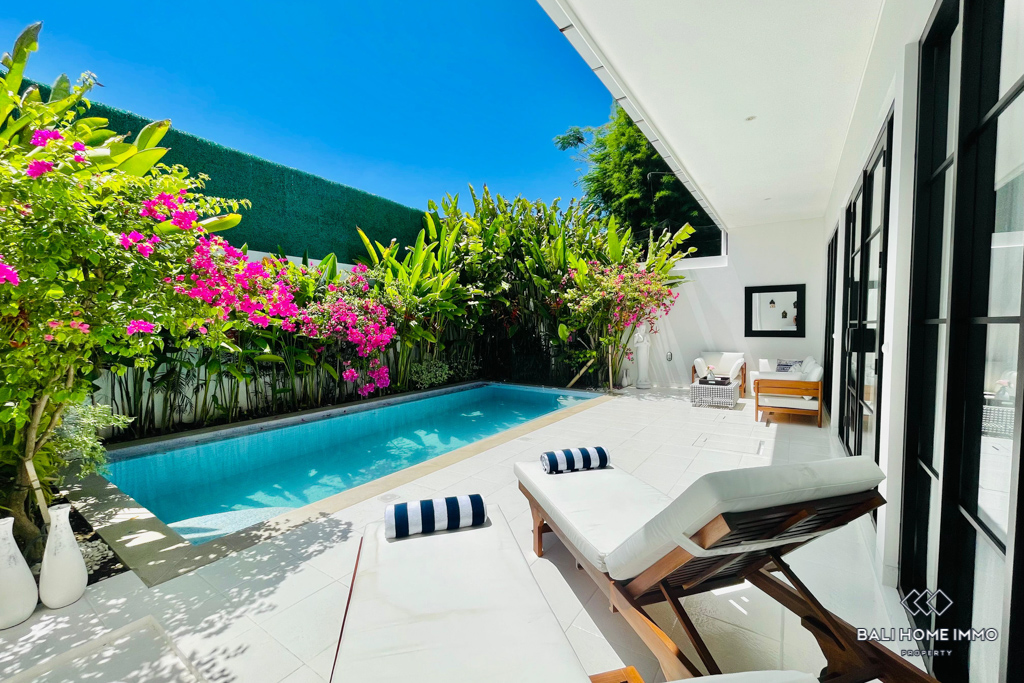 Nestled in the serene neighborhood of Umalas, this beautifully designed two-bedroom villa offers a perfect blend of modern elegance and tropical comfort. Each spacious bedroom features its own private ensuite bathroom, providing both privacy and convenience. The villa is fully furnished with tasteful, high-quality pieces that complement its sleek, contemporary style. Designed all on one level for easy access and seamless flow, the property boasts clean lines, natural lighting, and a calm ambiance throughout.