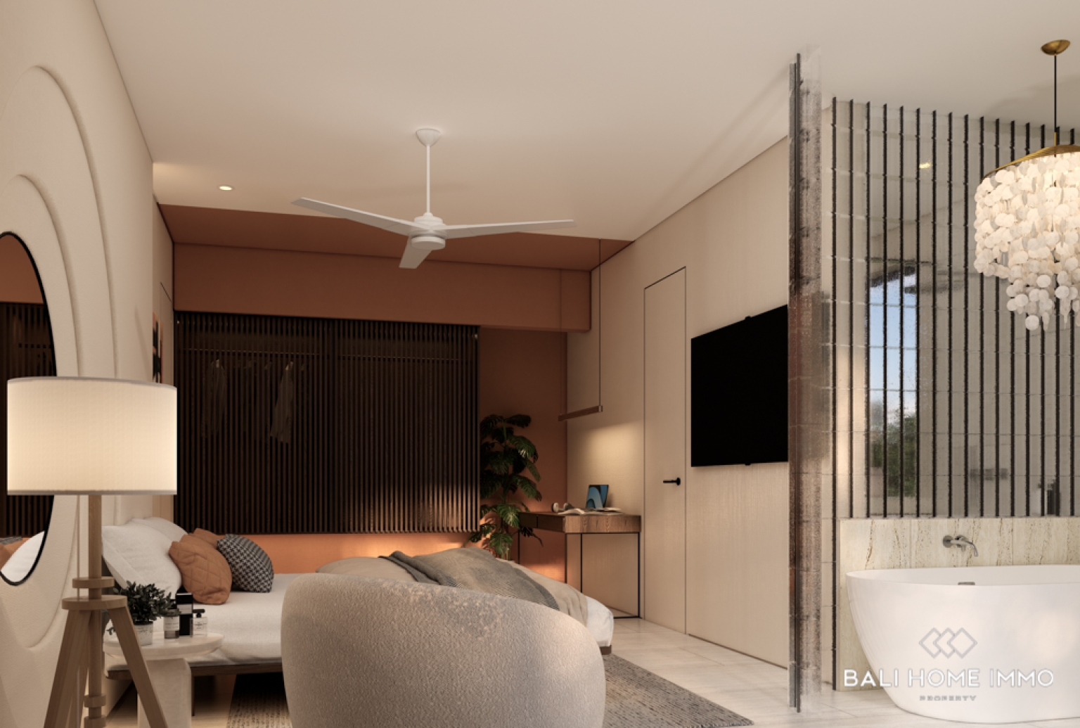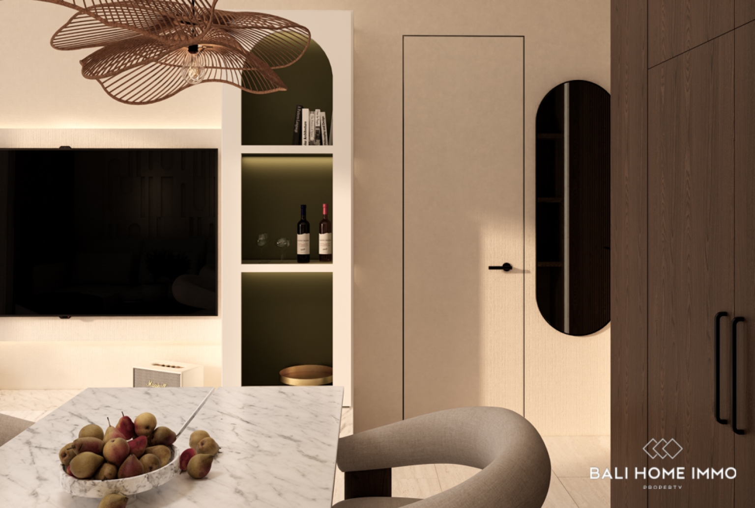 This refined off-plan one-bedroom villa for sale in Ungasan offers a perfect combination of japandi and boho topic style. Nestled near Green Bowl and Melasti Beach, it’s designed for those who value privacy, comfort, and a touch of artistic flair. Built on 70 m² of land with a 80 m² building, the villa’s architecture highlights natural materials, clean lines, and an open, airy ambiance that complements its tropical surroundings.