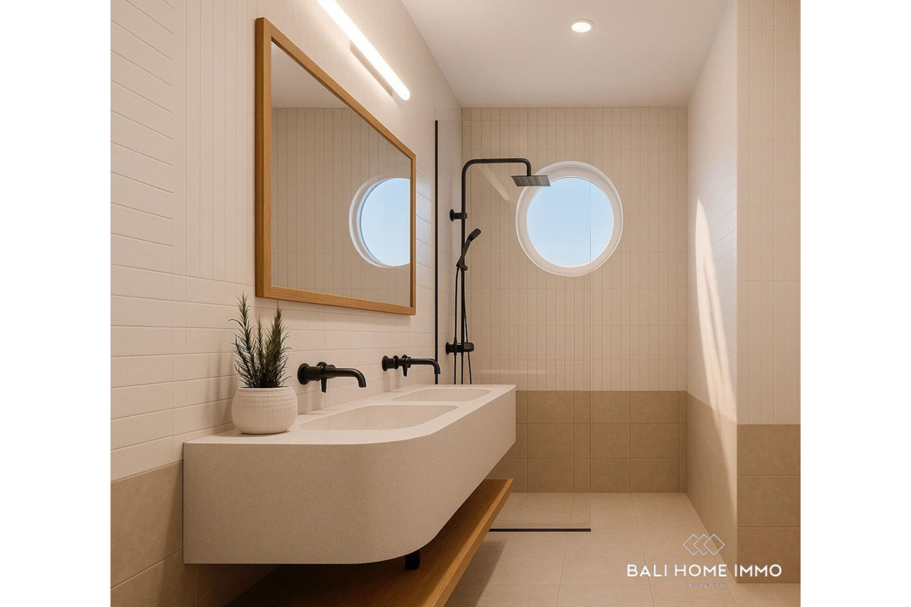 Enjoy the tropical lifestyle with a private swimming pool and outdoor shower, complemented by clean architectural lines and natural finishes that enhance the warm, inviting atmosphere. Every detail is designed to maximize comfort and relaxation, while large windows bring in plenty of natural light, creating a bright and airy ambiance throughout the villa.